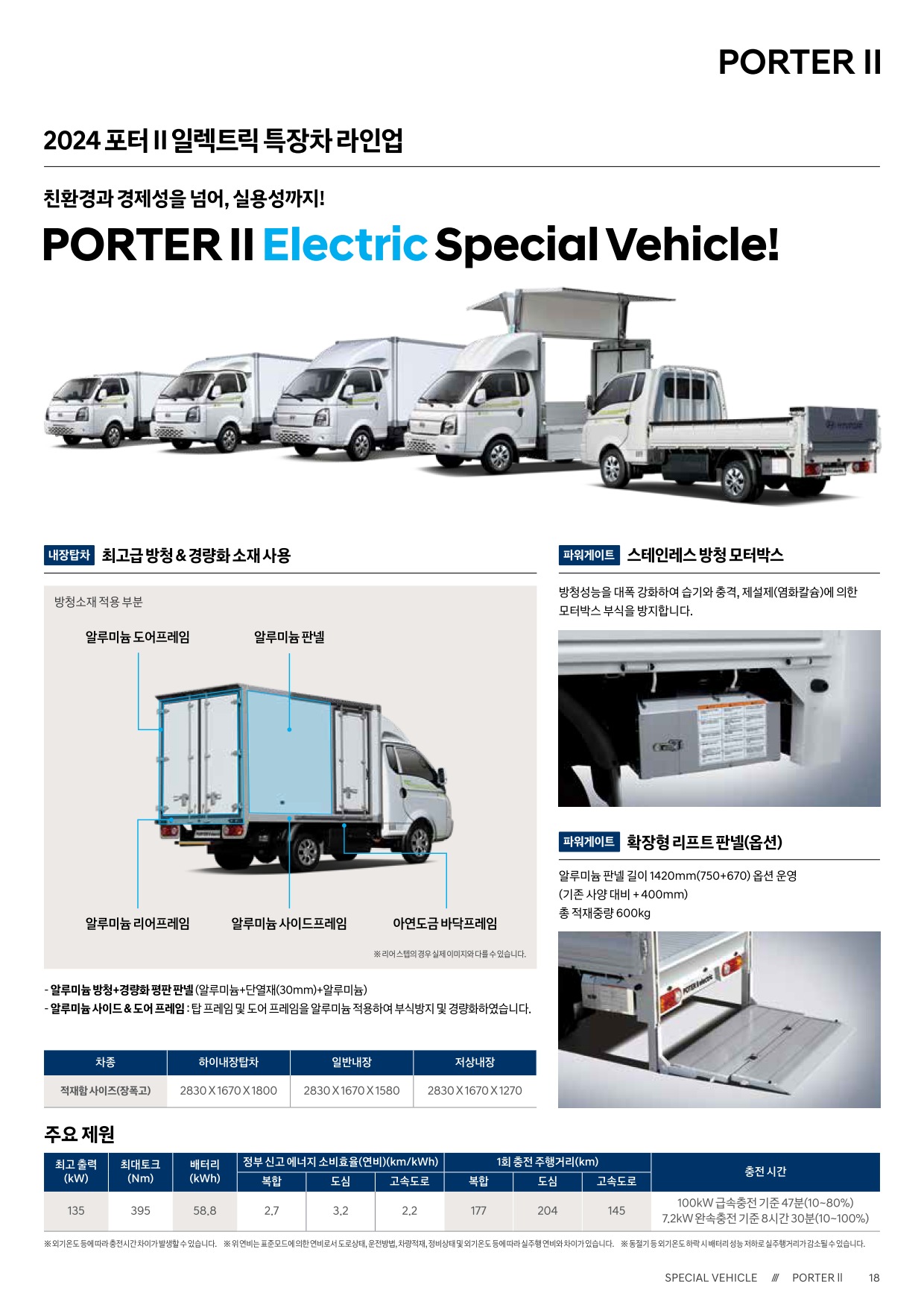 2024년 12월 포터 일렉트릭 & 포터 일렉트릭 특장차 신차가격표