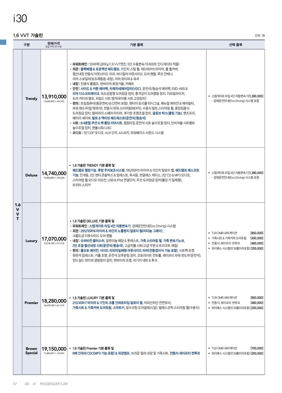 ※ 본 가격표의 모든 저작권은 해당 차량 제조사에 있습니다.