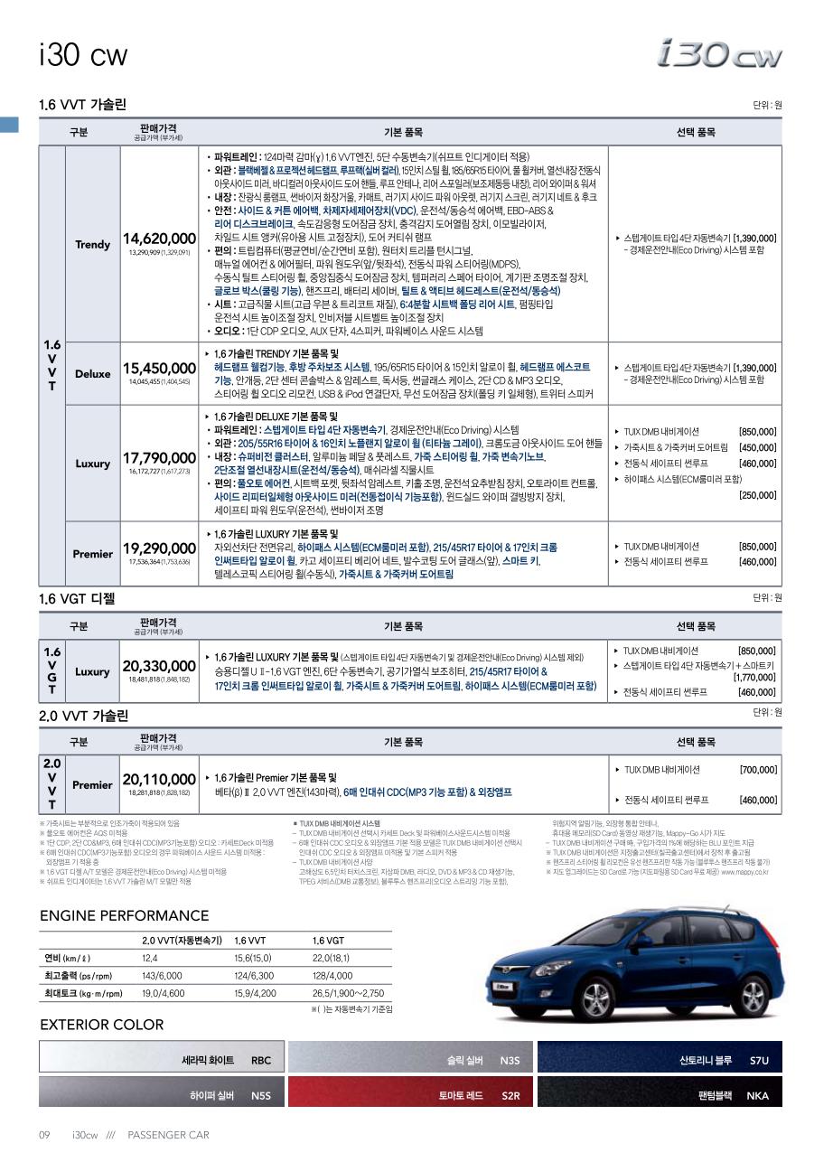 2011년 9월 아이써티(i30) 신차가격표