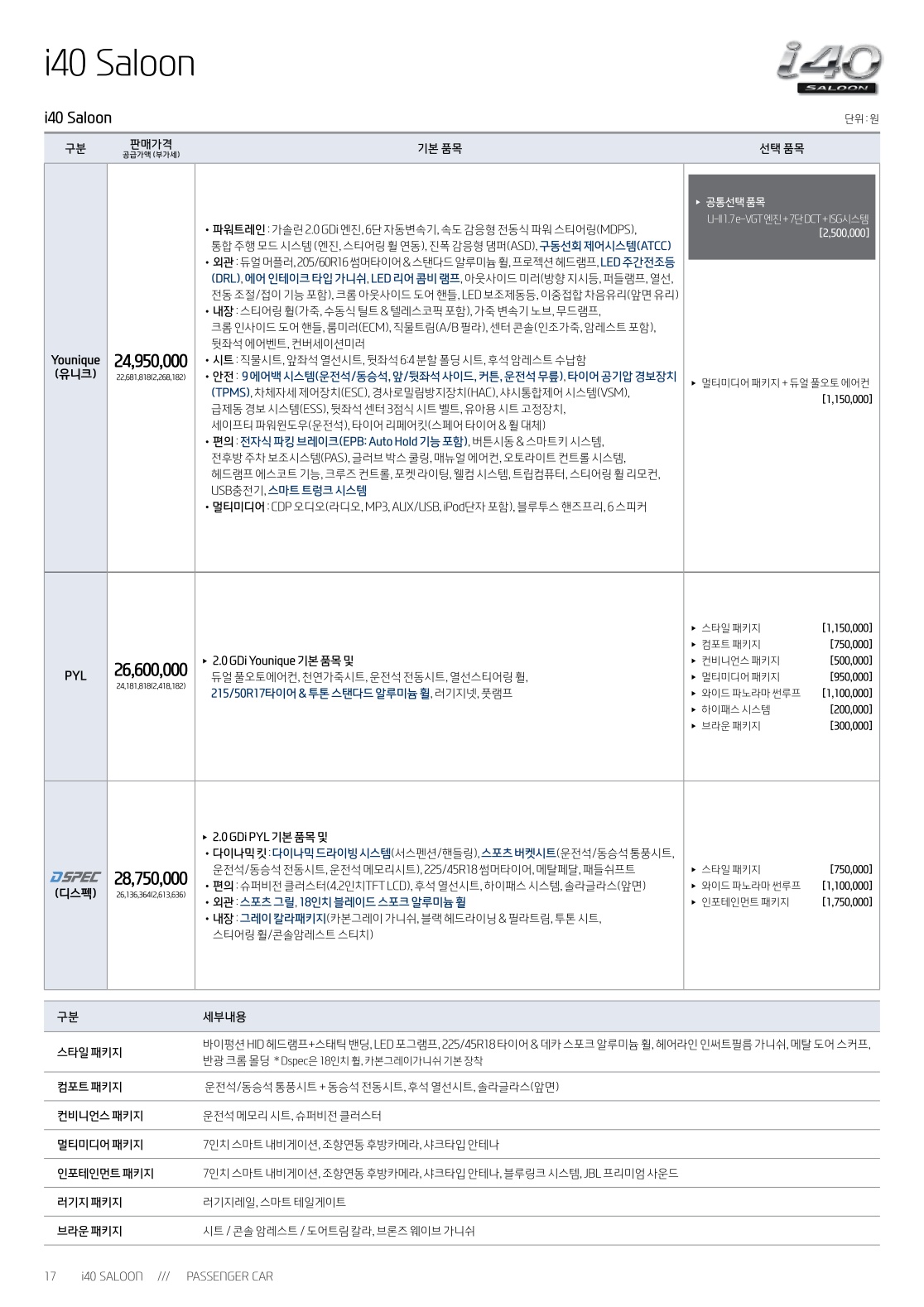 2015년 2월 i40 신차가격표 (더 뉴 i40)