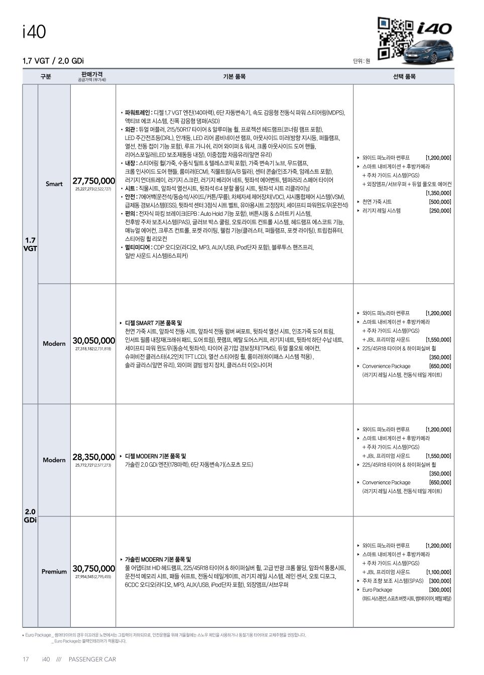 2012년 1월 i40 세단(살롱) / 왜건 신차가격표