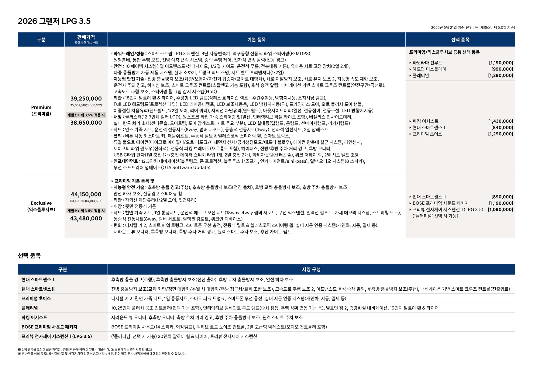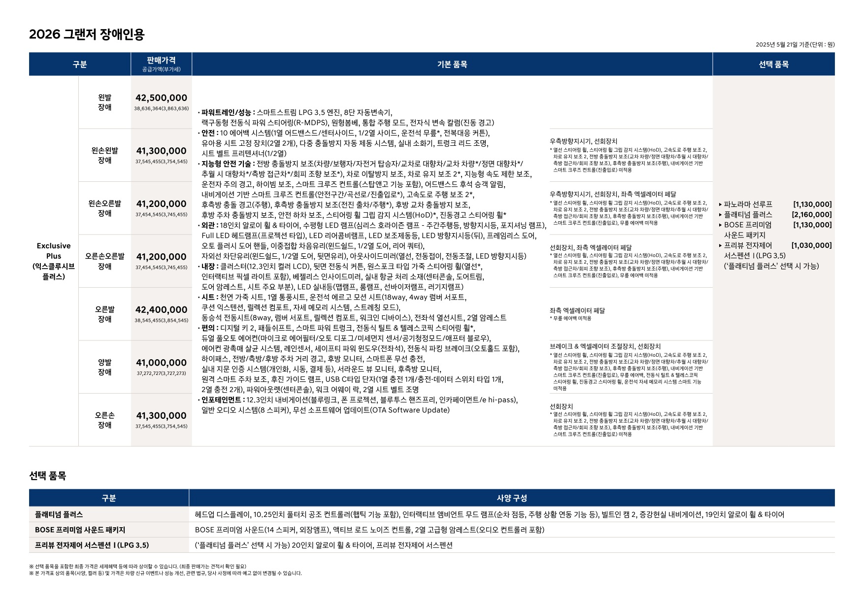 2025년 5월 그랜저 신차가격표 (2026년형 그랜저 출시)