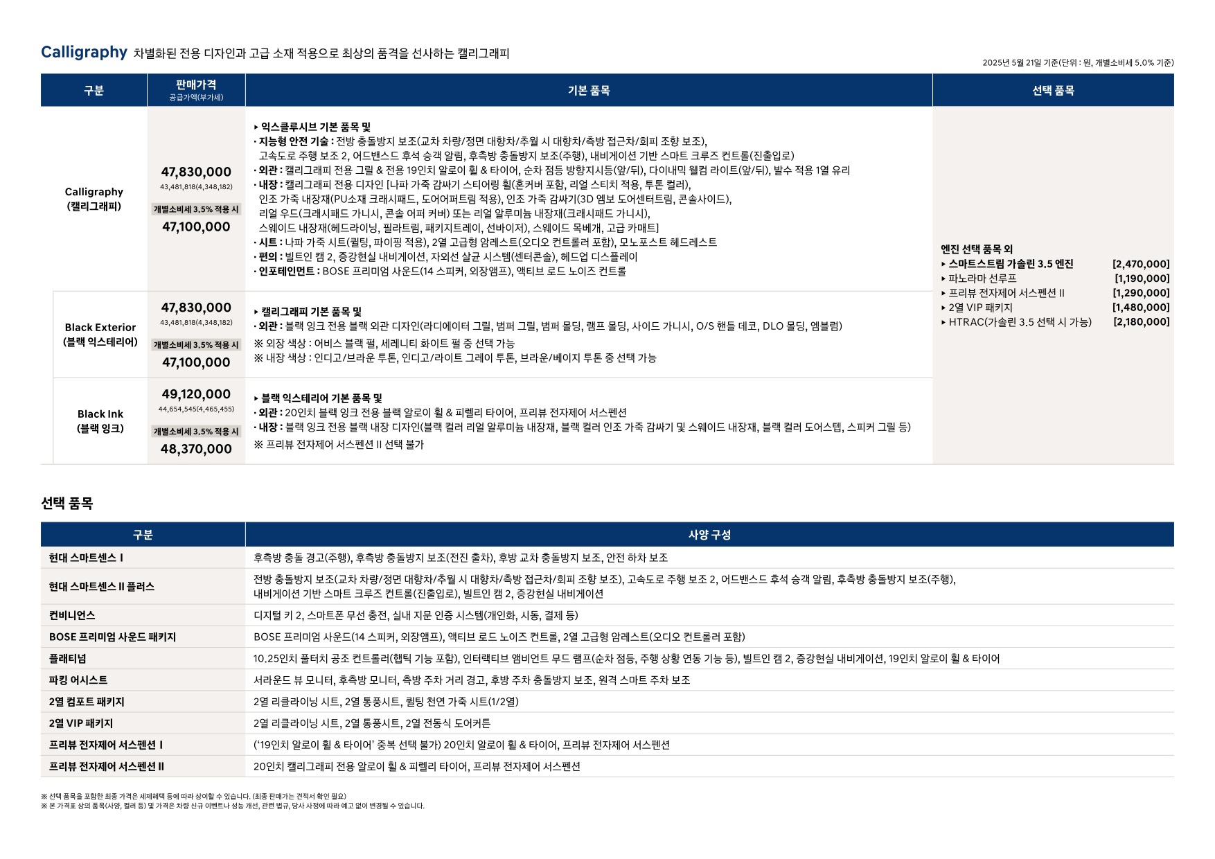 ※ 본 가격표의 모든 저작권은 해당 차량 제조사에 있습니다.