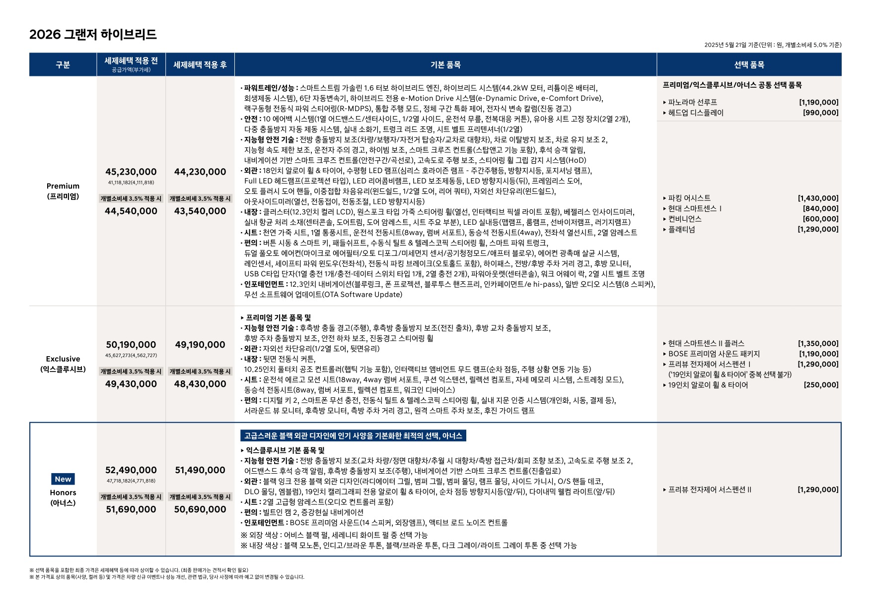 2025년 5월 그랜저 하이브리드 신차가격표 (2026년형 그랜드 하이브리드 출시)