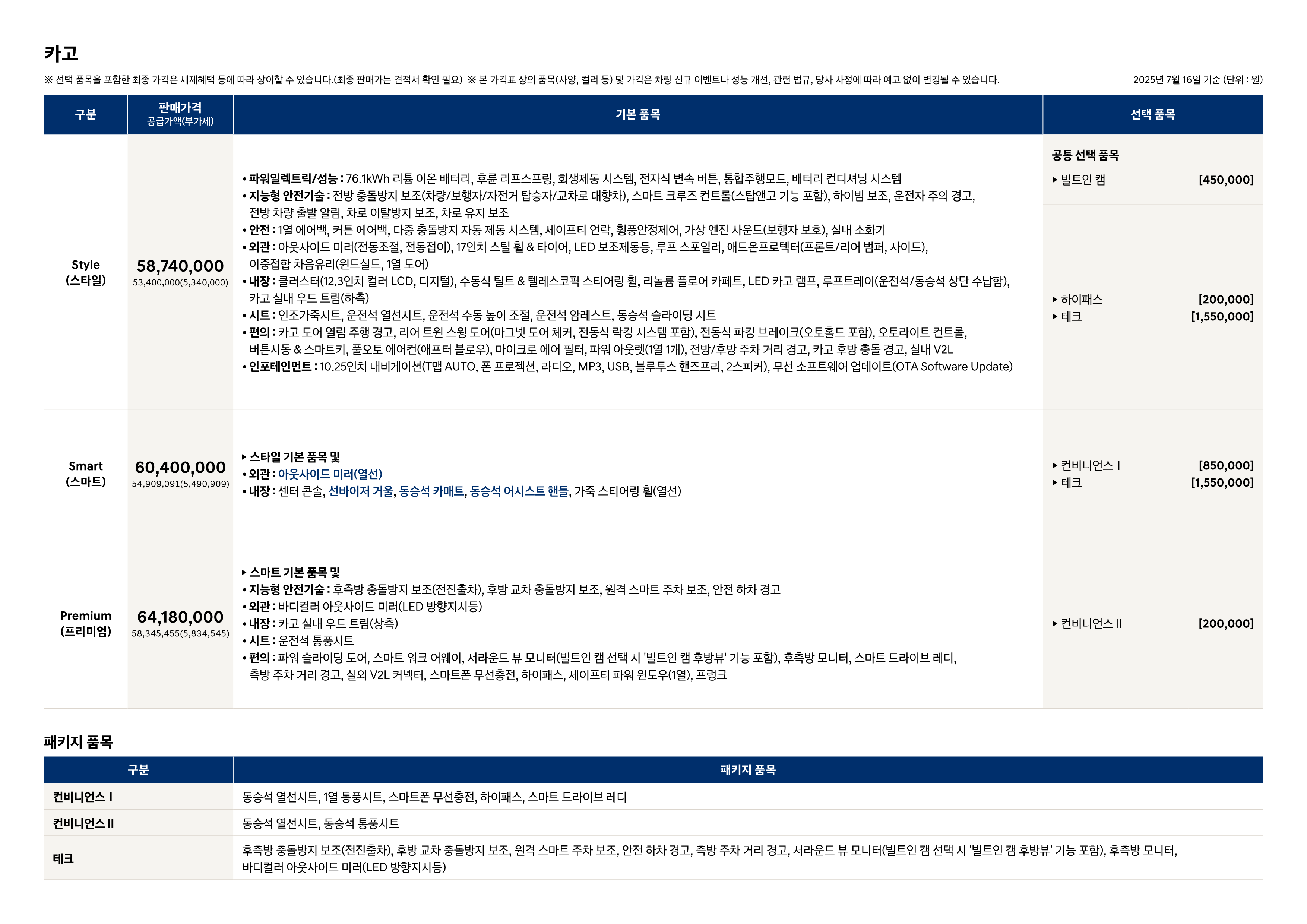2025년 7월 캐스퍼 일렉트릭 신차가격표 (2026년형 캐스퍼 일렉트릭 출시)