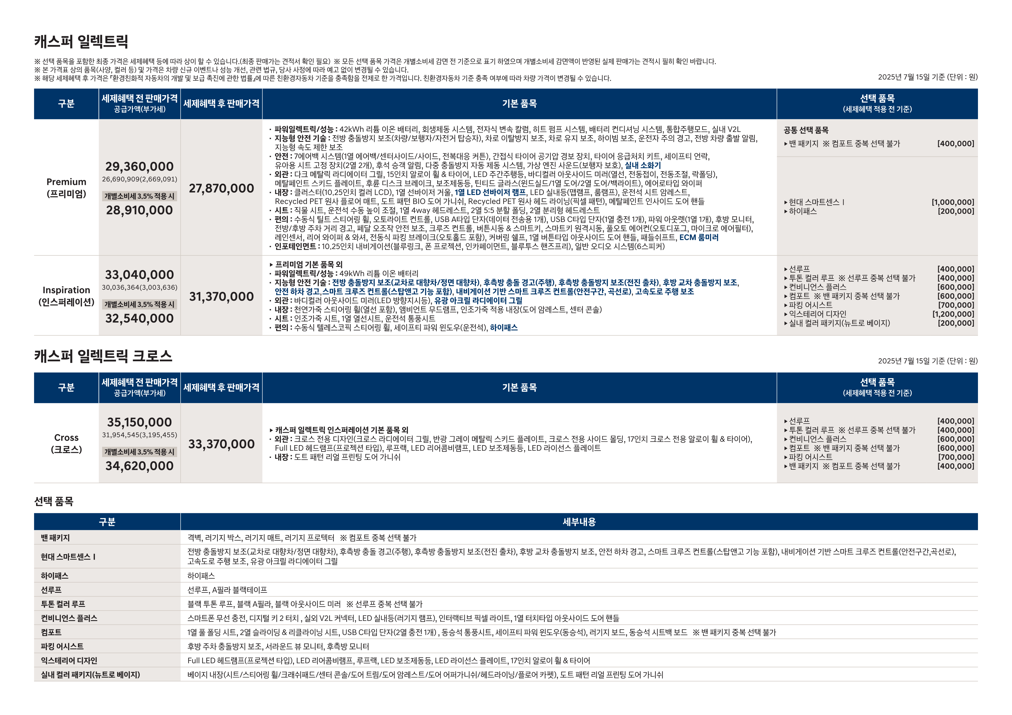 2025년 7월 캐스퍼 일렉트릭 신차가격표 (2026년형 캐스퍼 일렉트릭 출시)