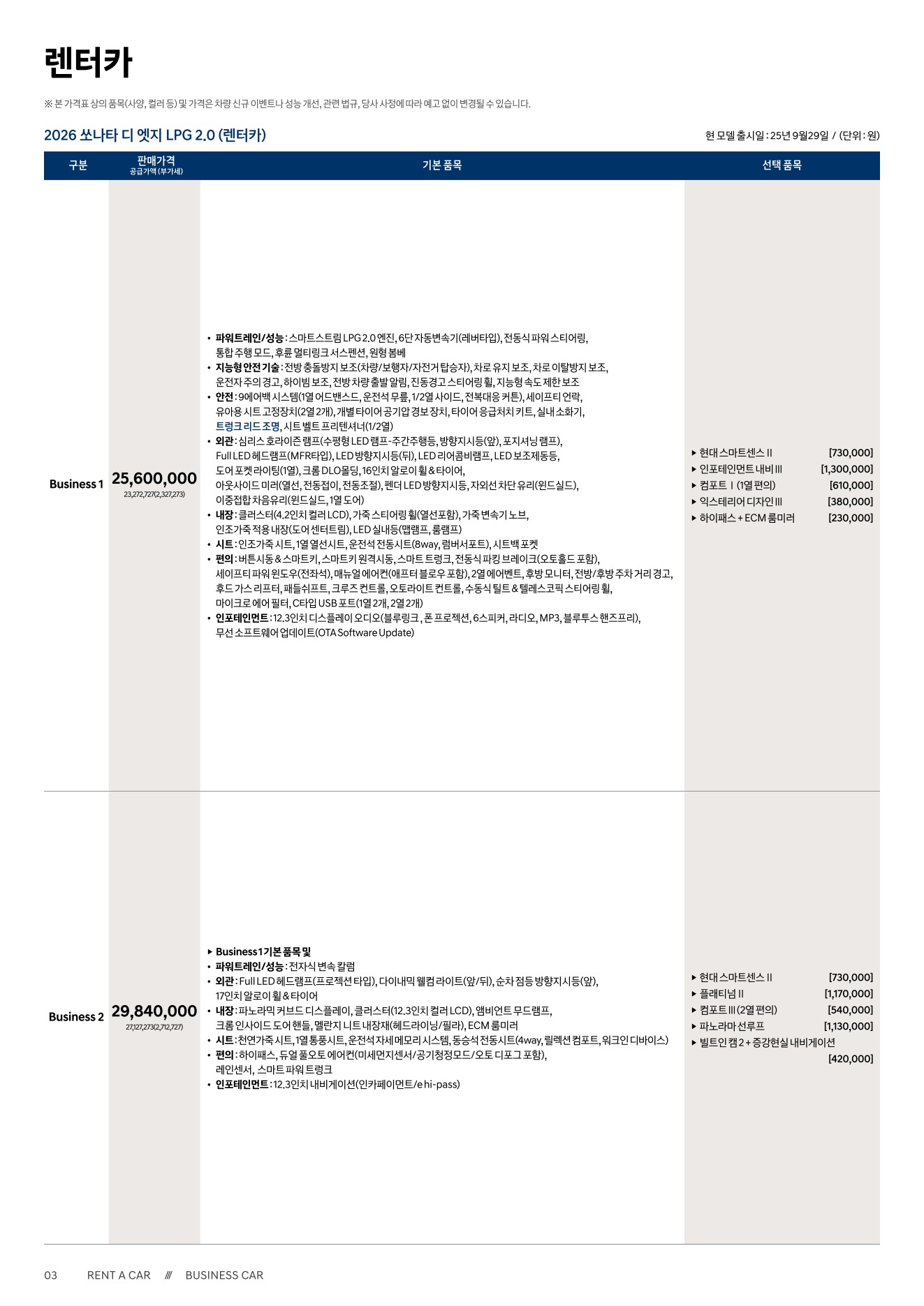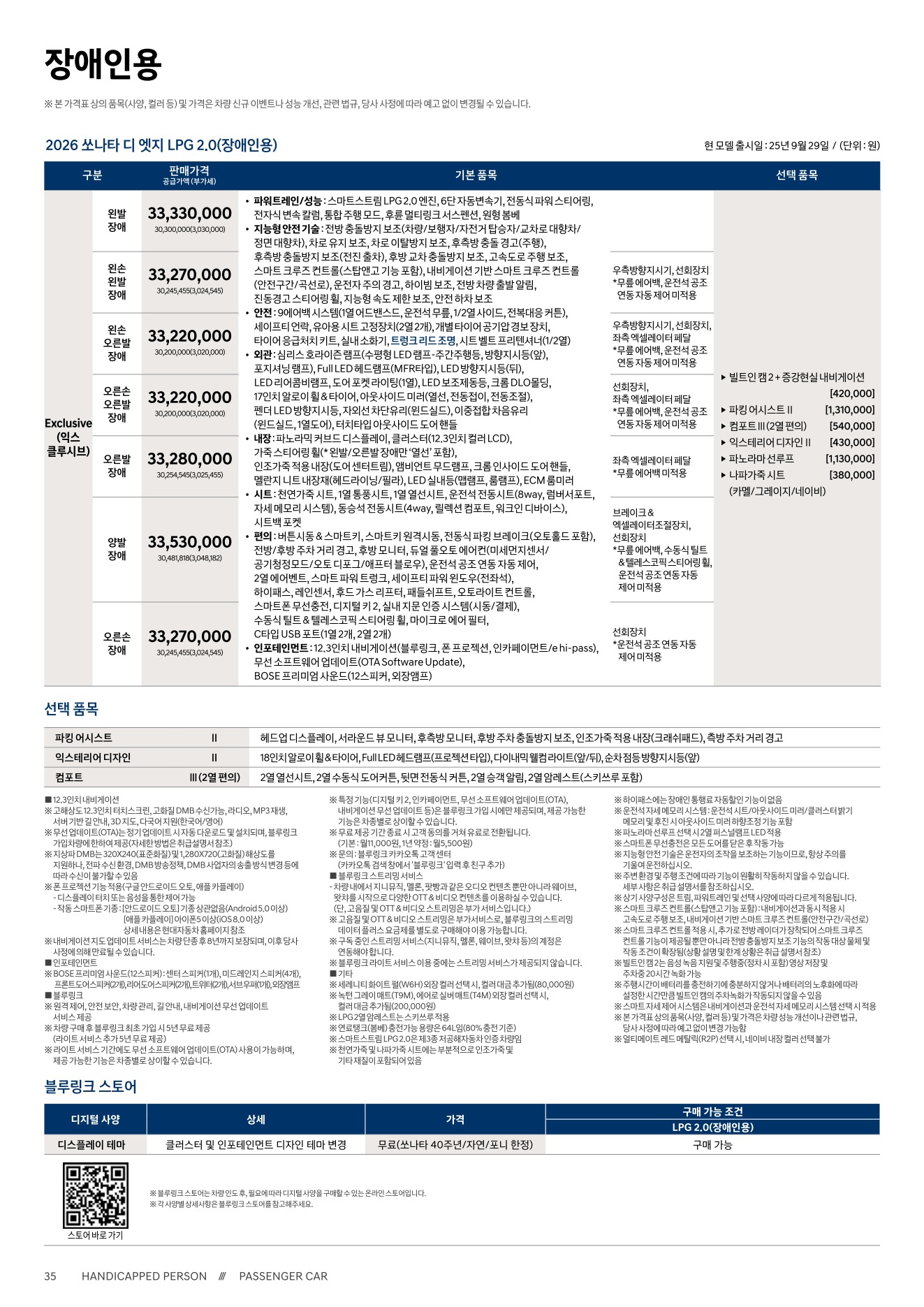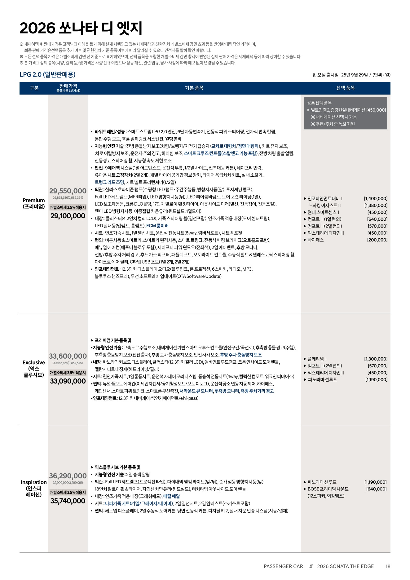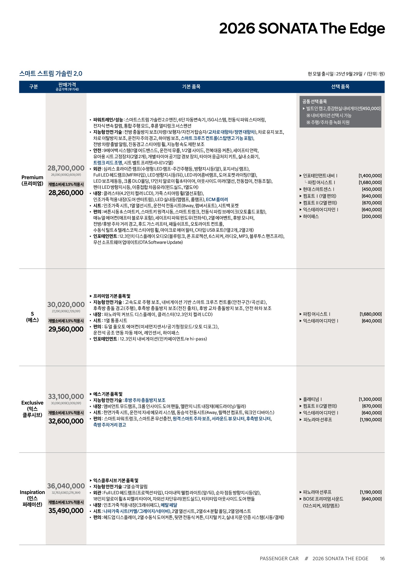2025년 10월 쏘나타 신차가격표 (2026년형 쏘나타 출시)