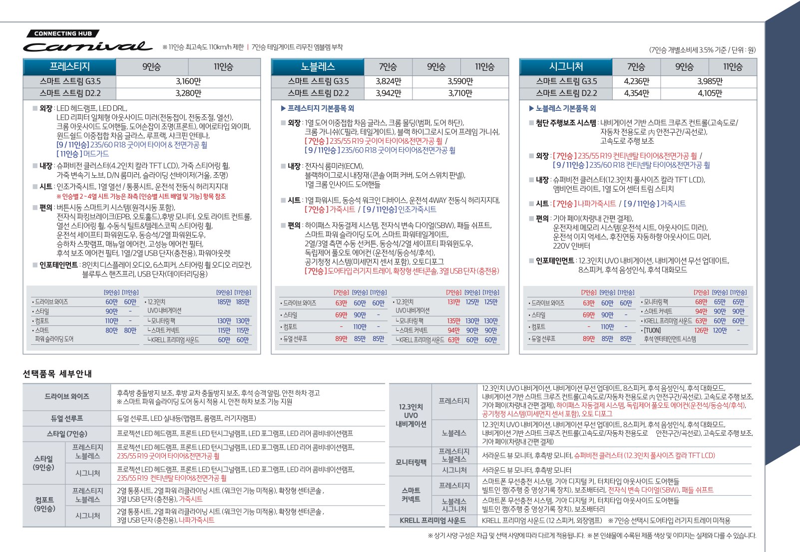 2020년 8월 카니발 신차가격표 (4세대 카니발 KA4 출시)