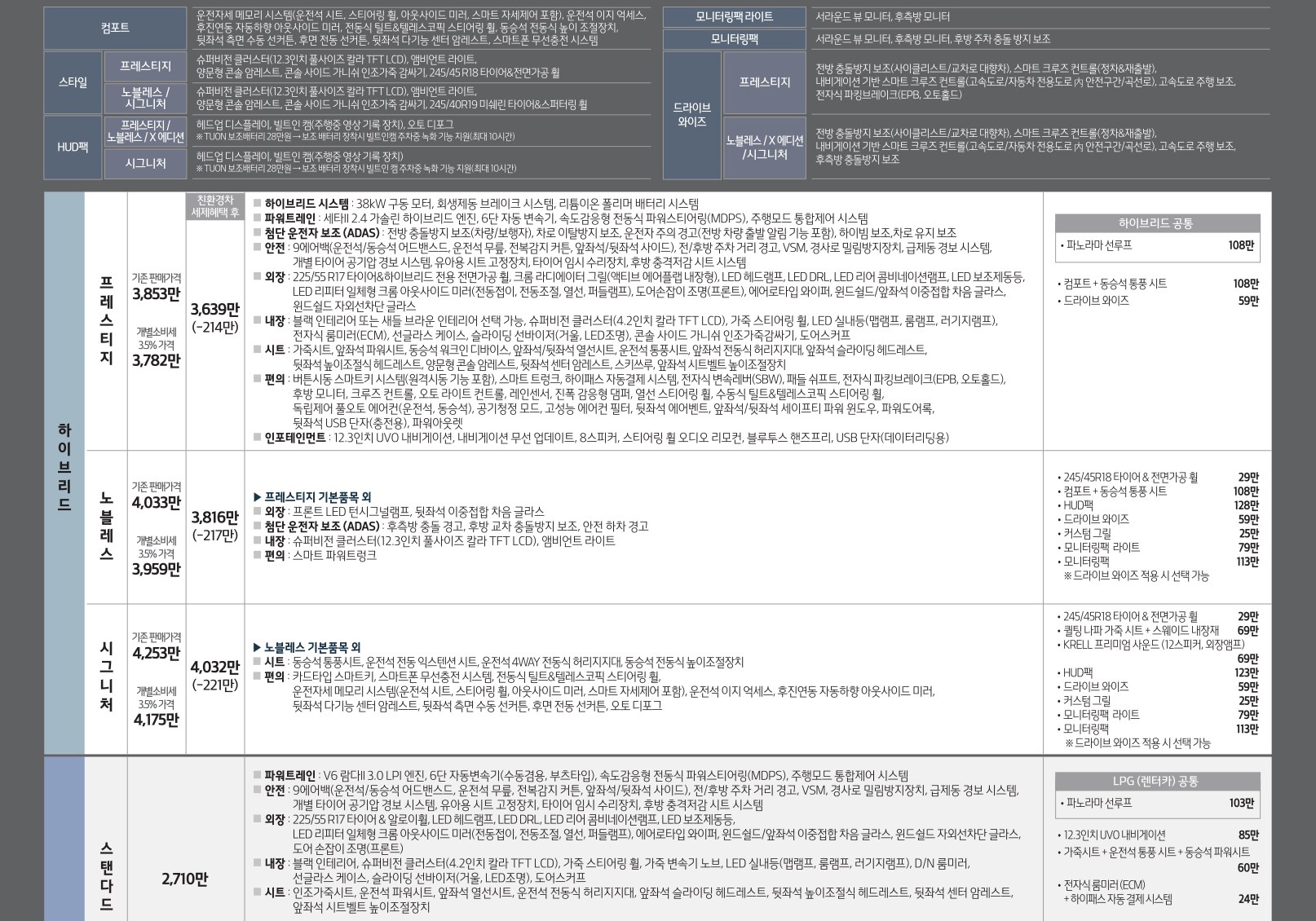 ※ 본 가격표의 모든 저작권은 해당 차량 제조사에 있습니다.