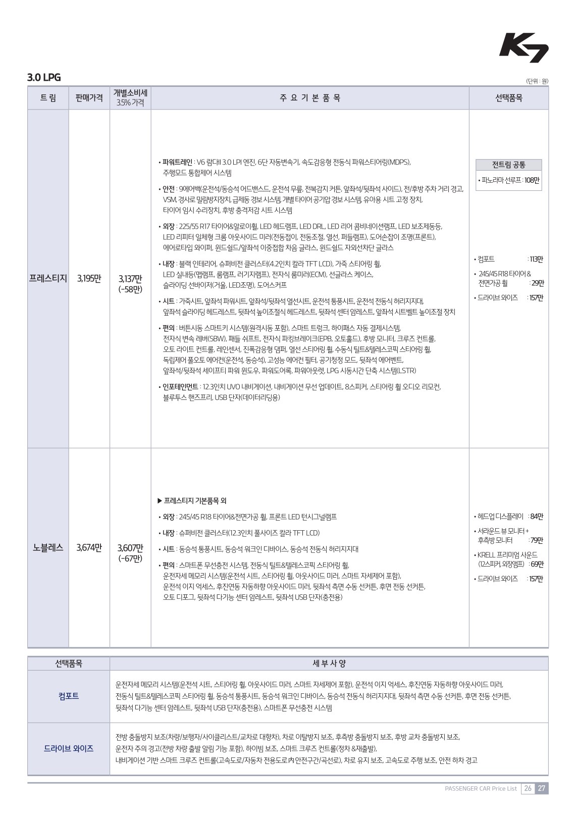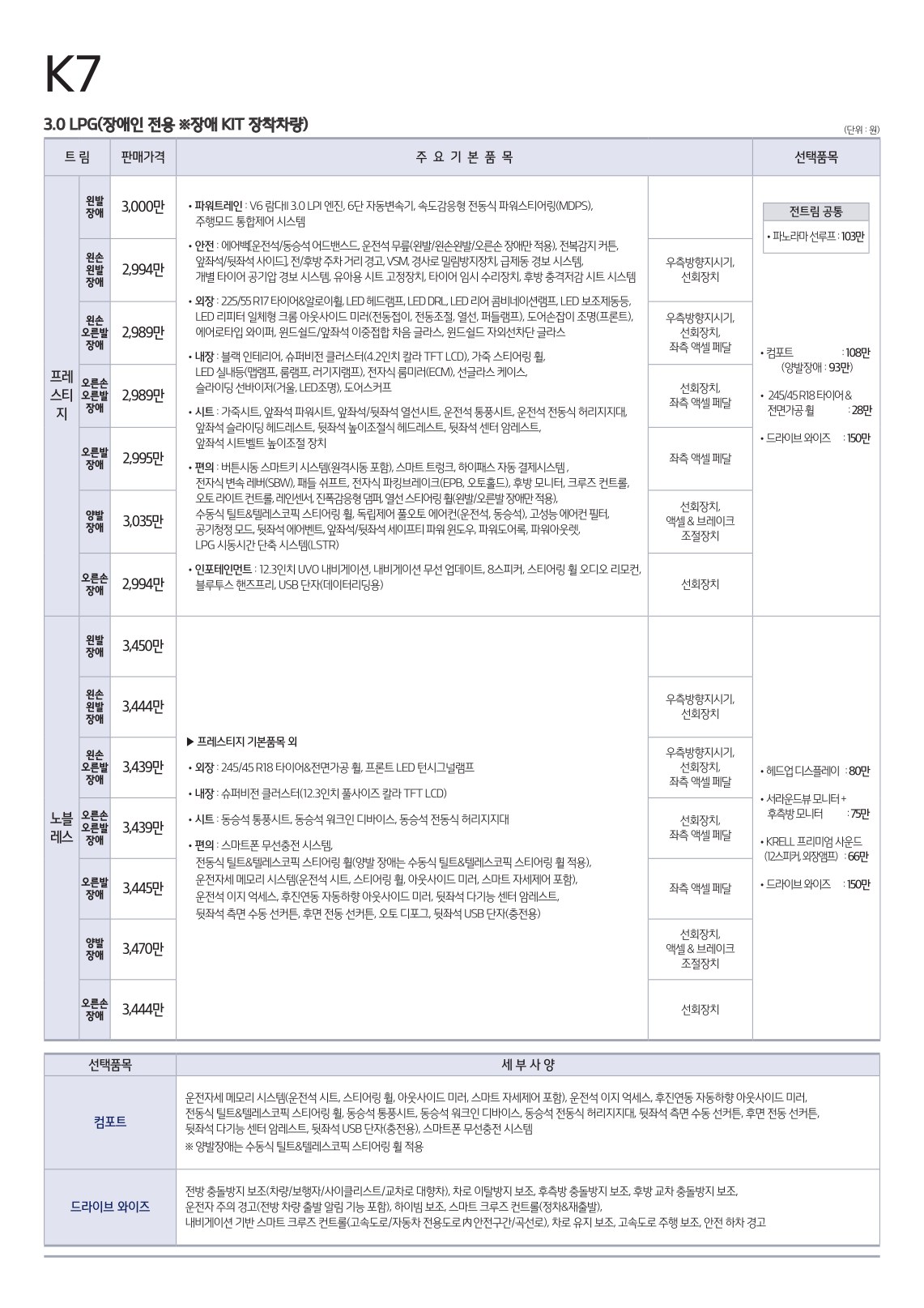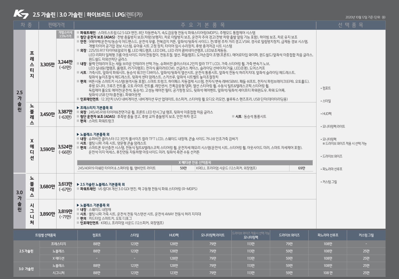 2020년 10월 K7 신차가격표 (2021년형 K7 출시)