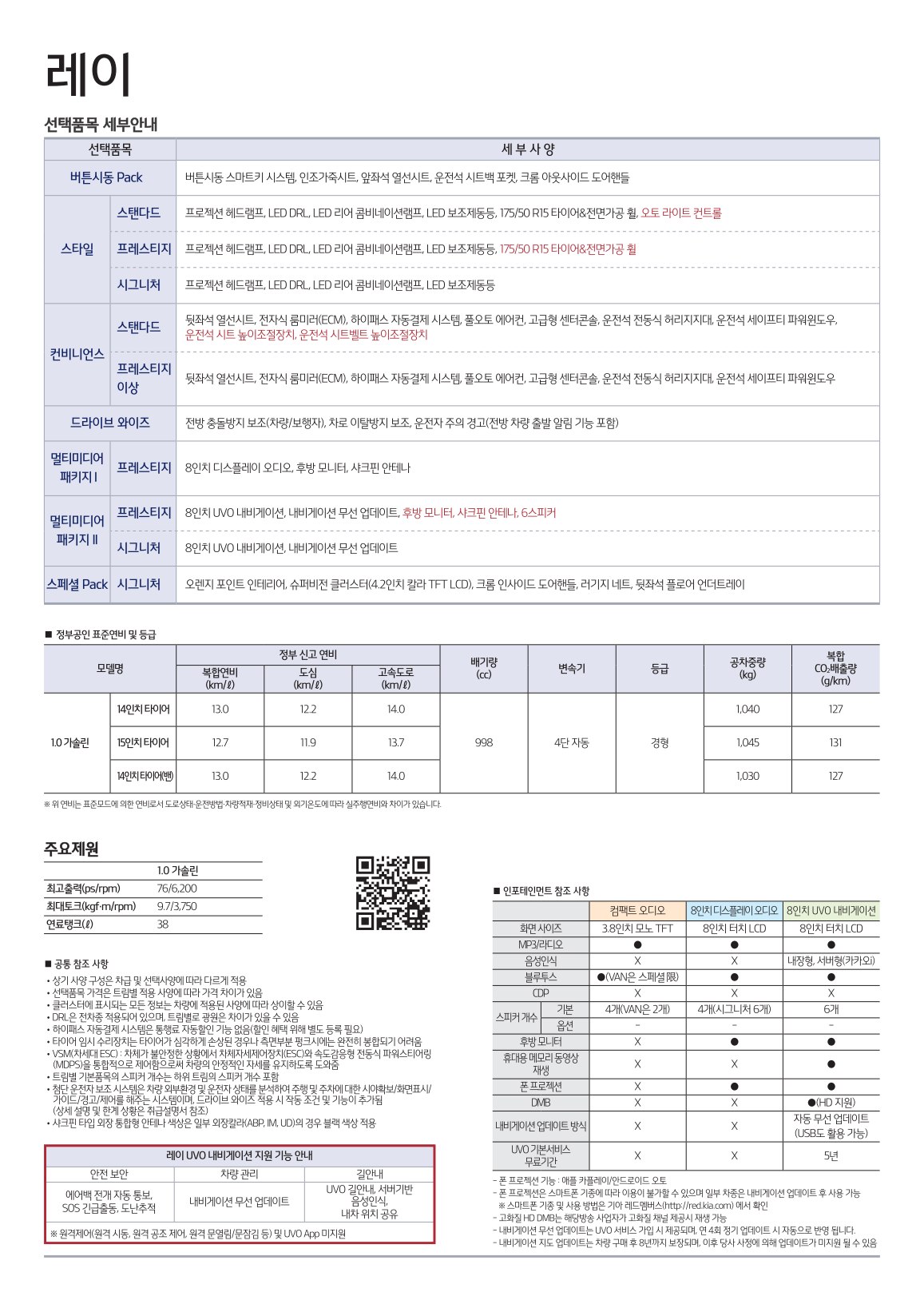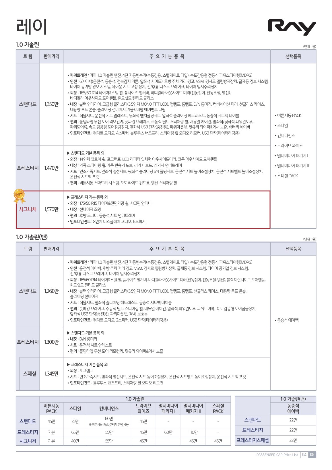 2020년 10월 레이 신차가격표