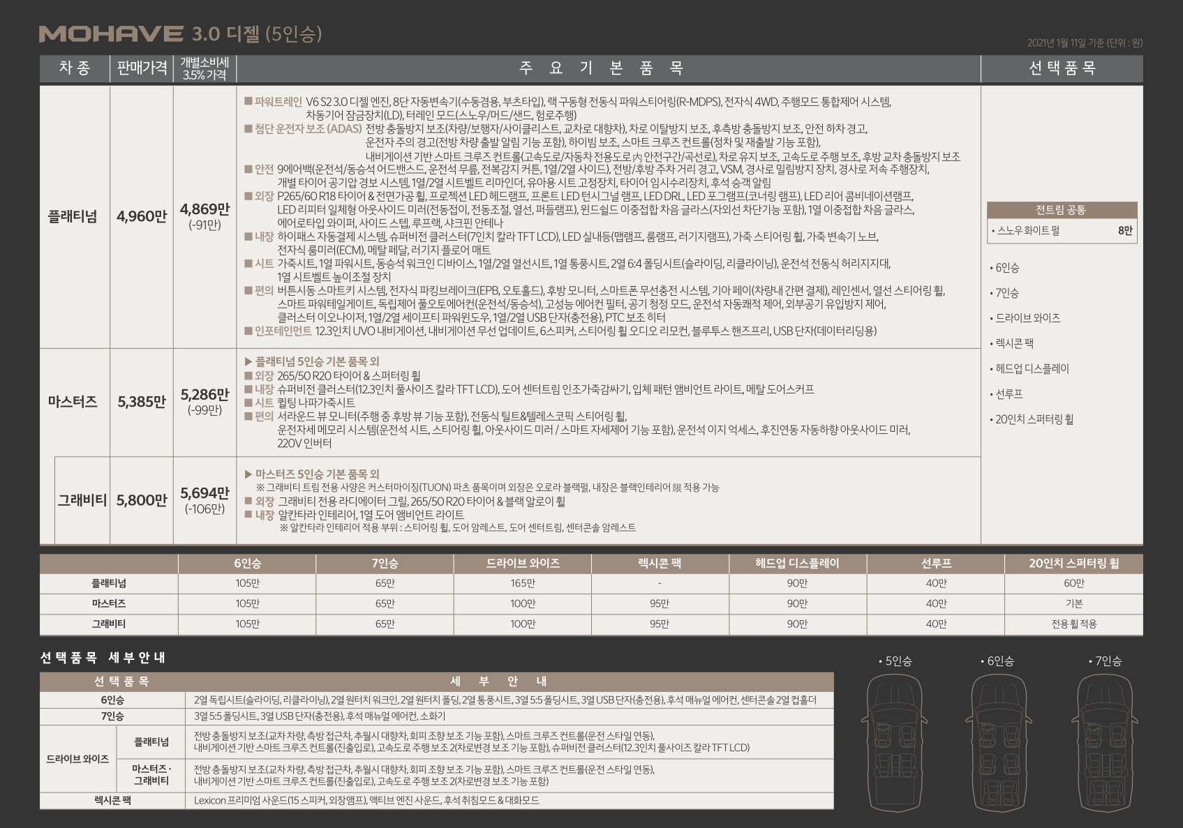 2021년 1월 모하비 신차가격표 (2021년형 모하비 출시)