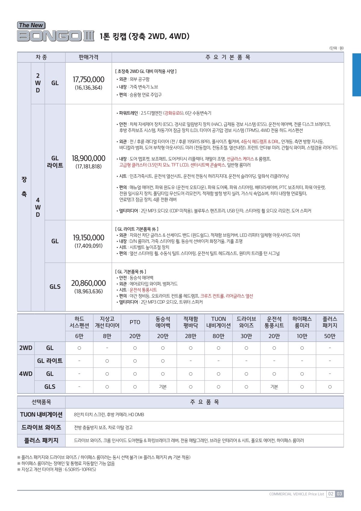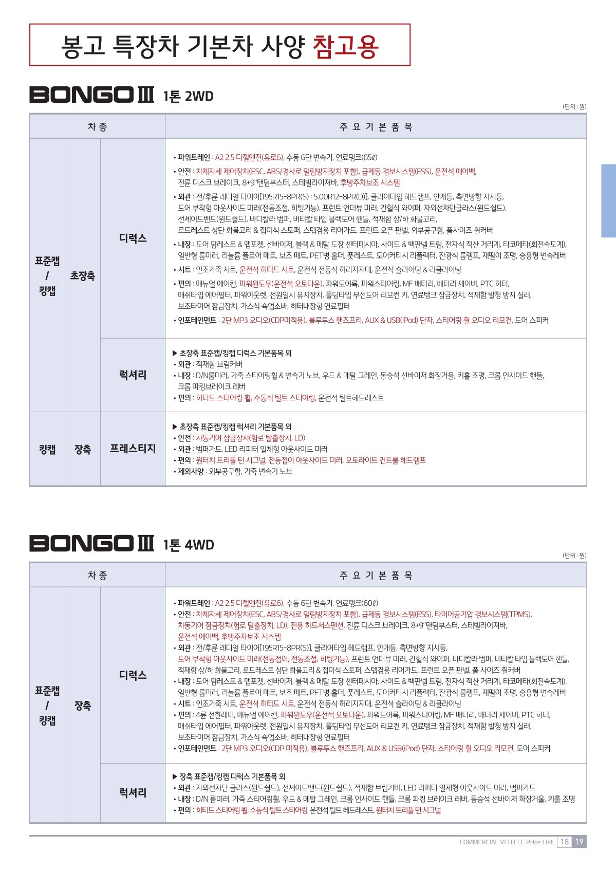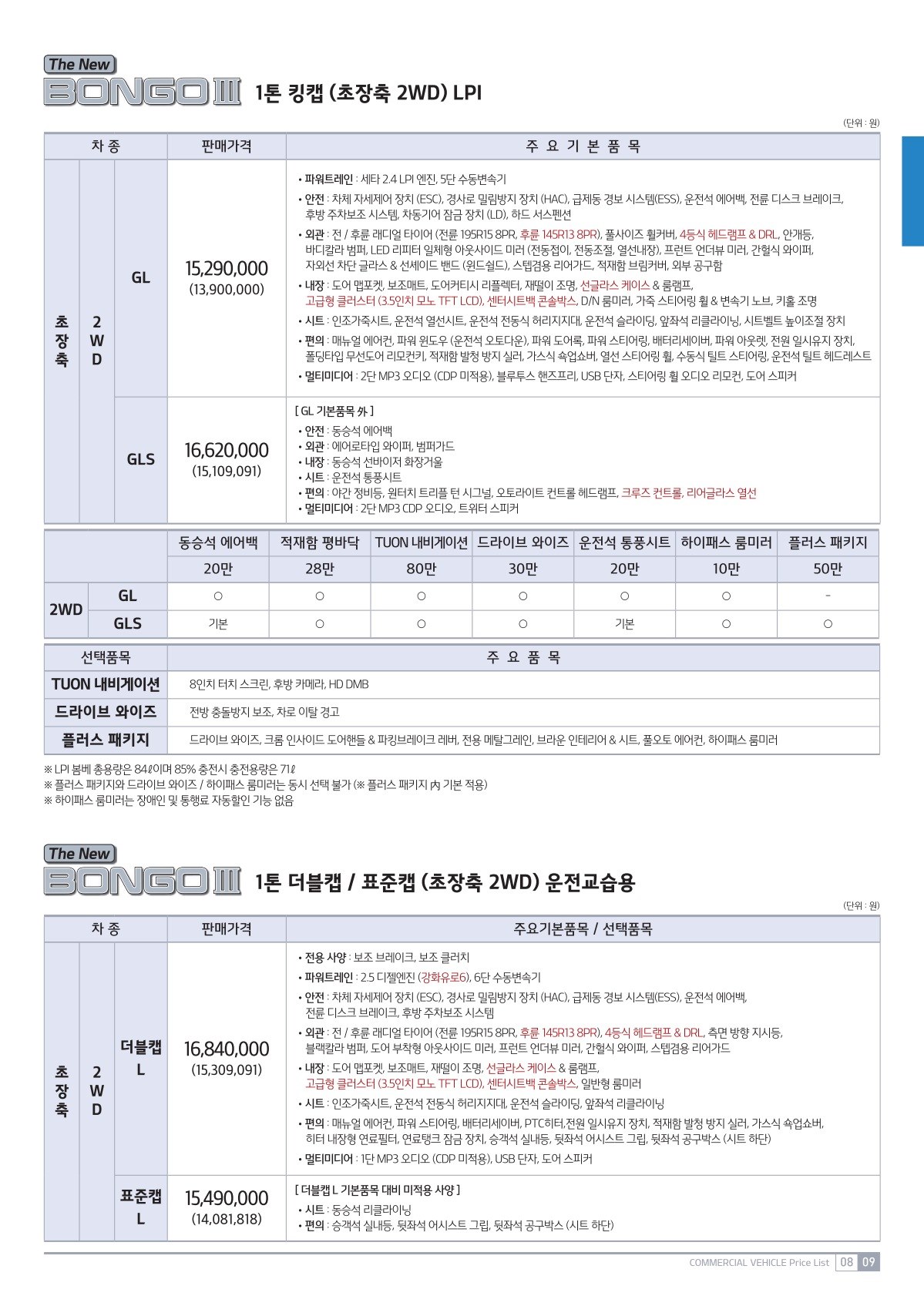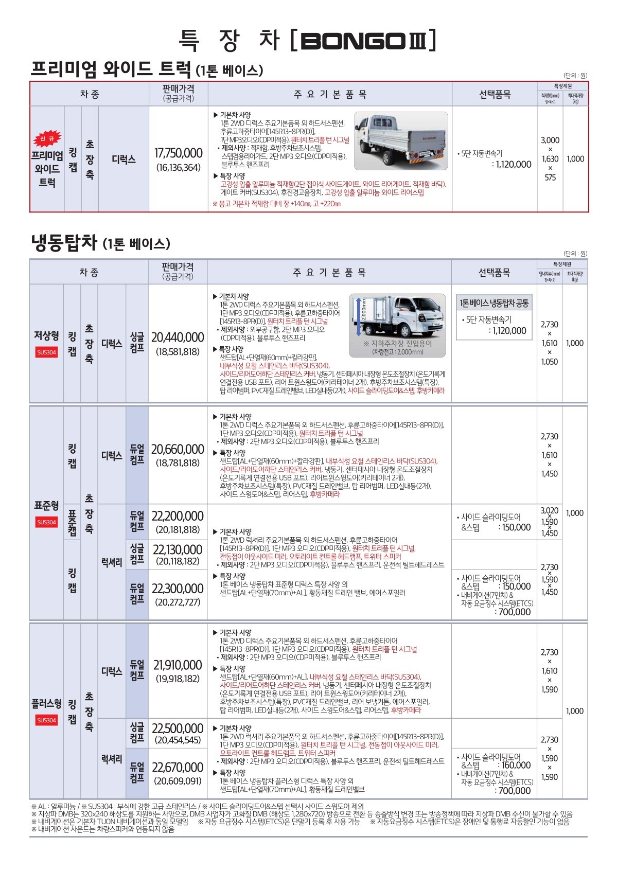 2019년 9월 봉고3 & 봉고3특장차 신차가격표 (더뉴봉고3 출시)