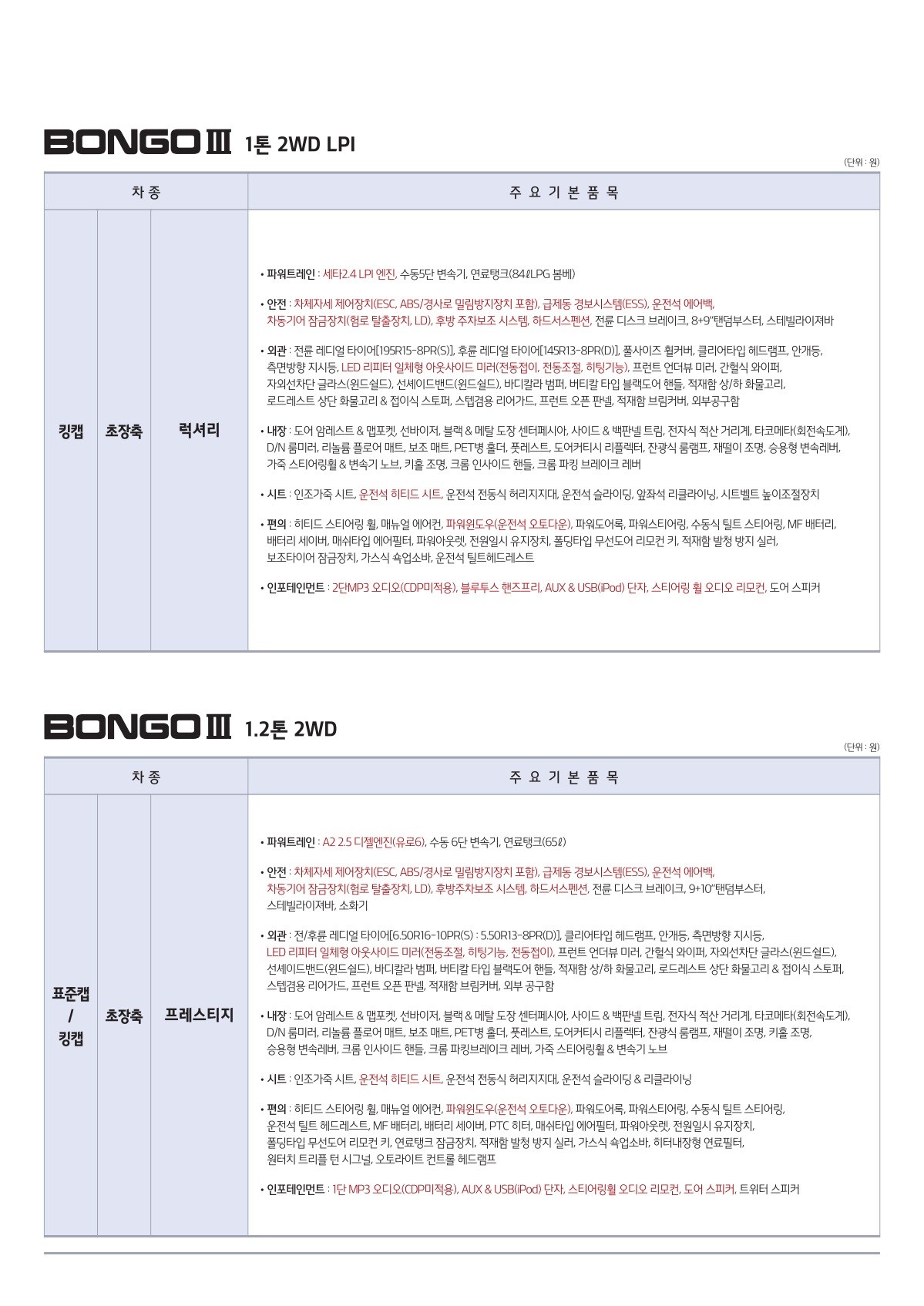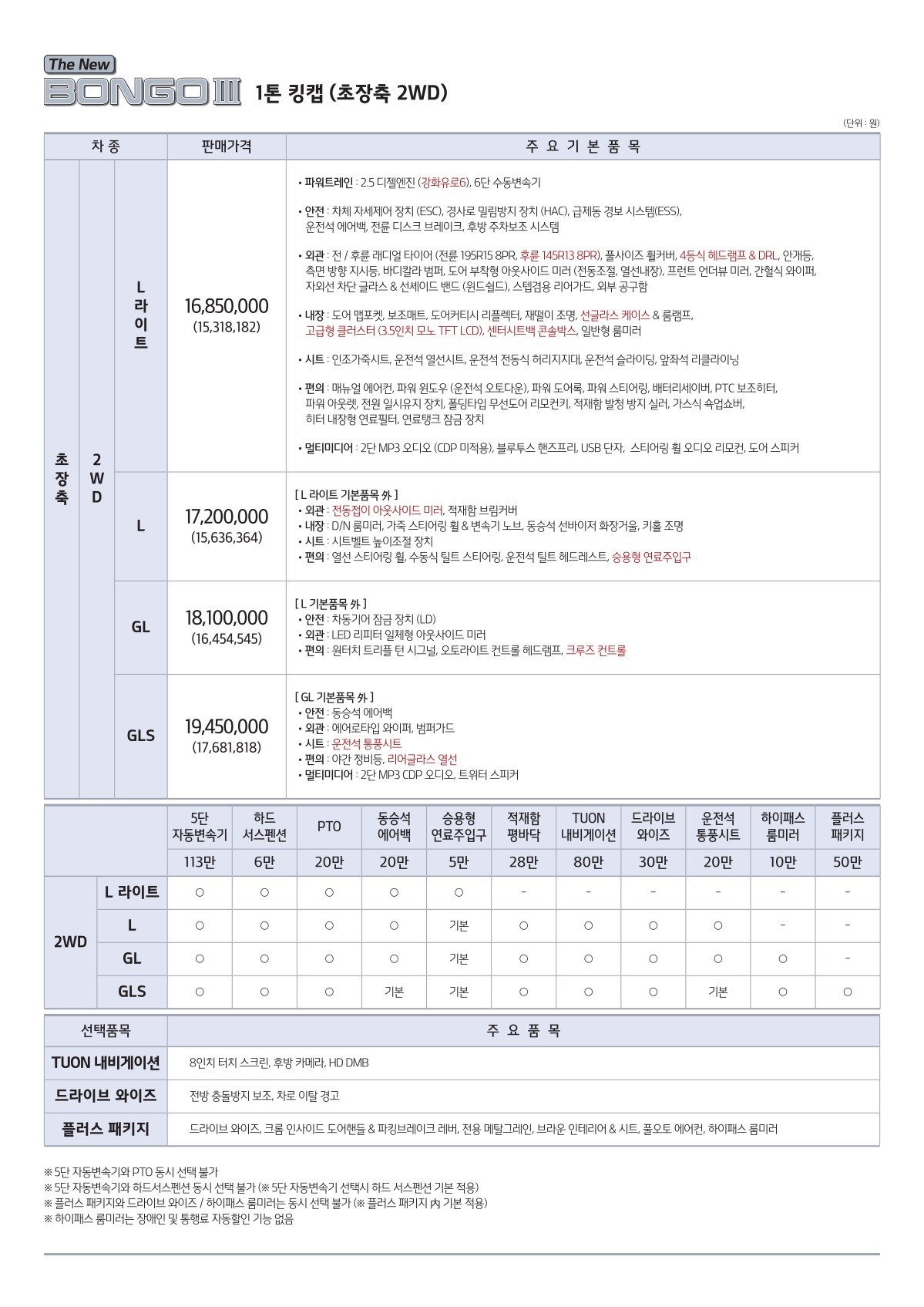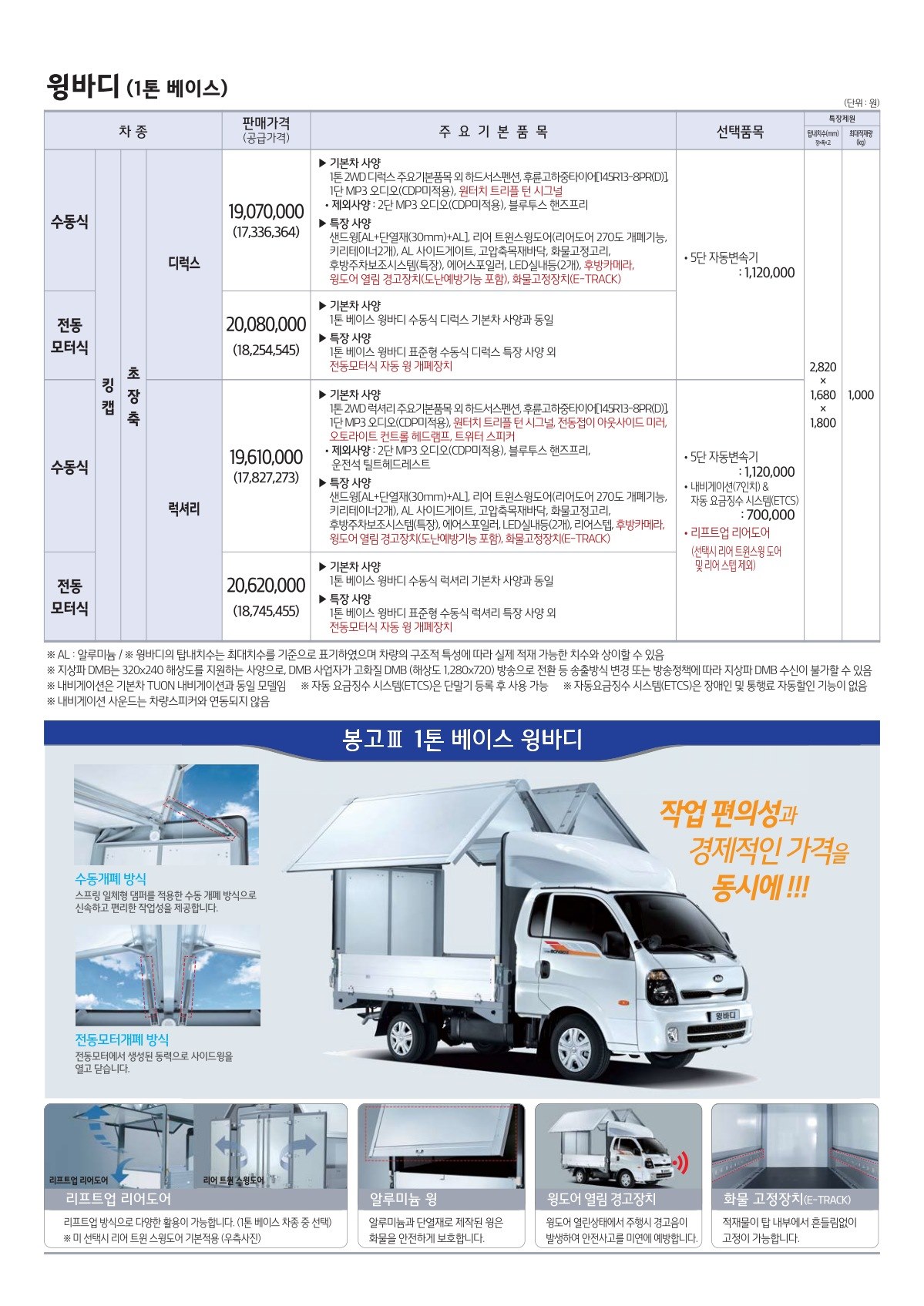 2019년 9월 봉고3 & 봉고3특장차 신차가격표 (더뉴봉고3 출시)