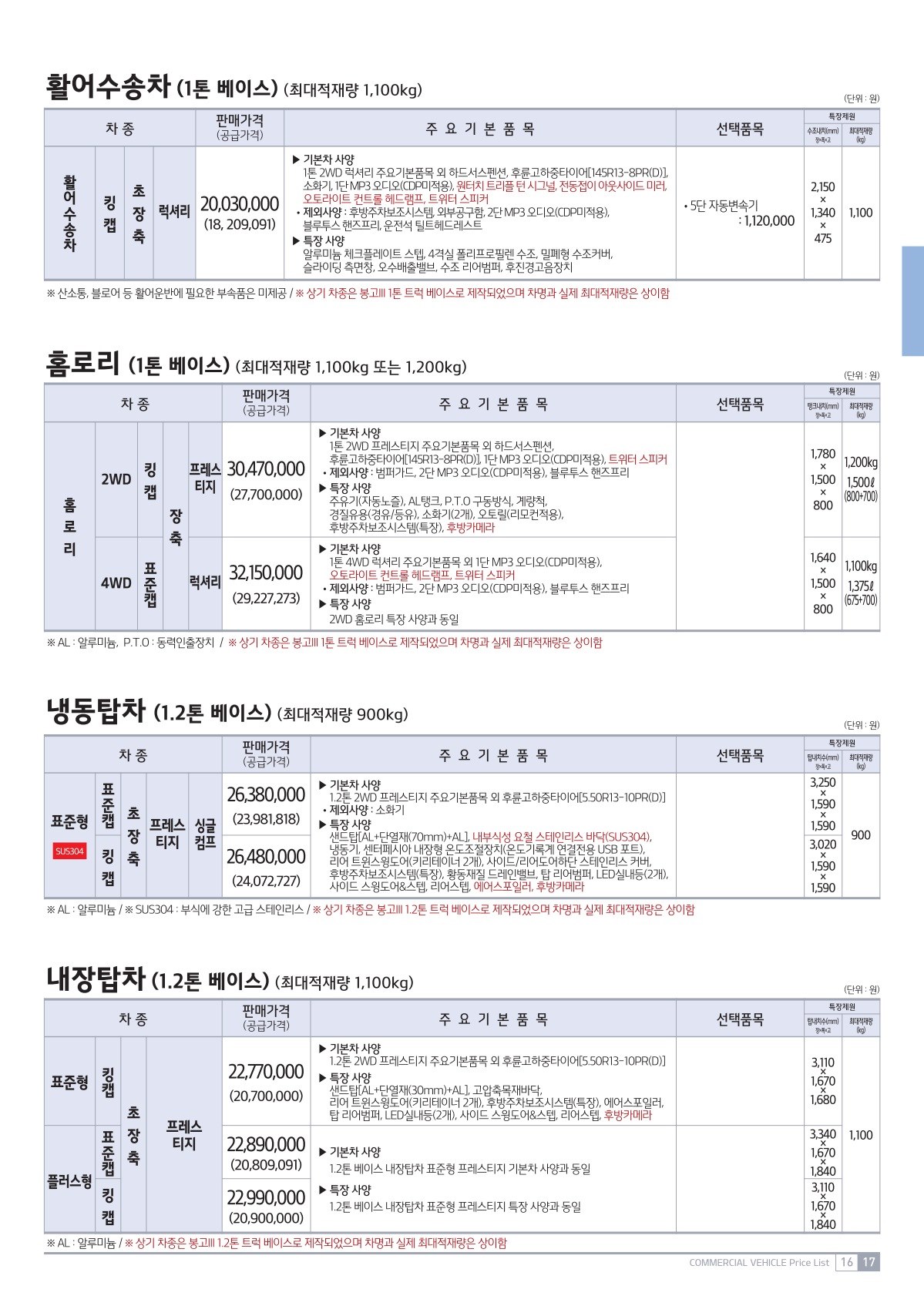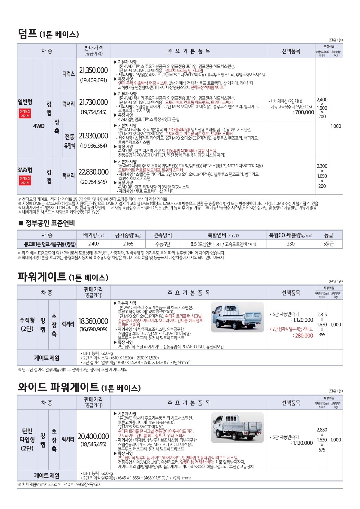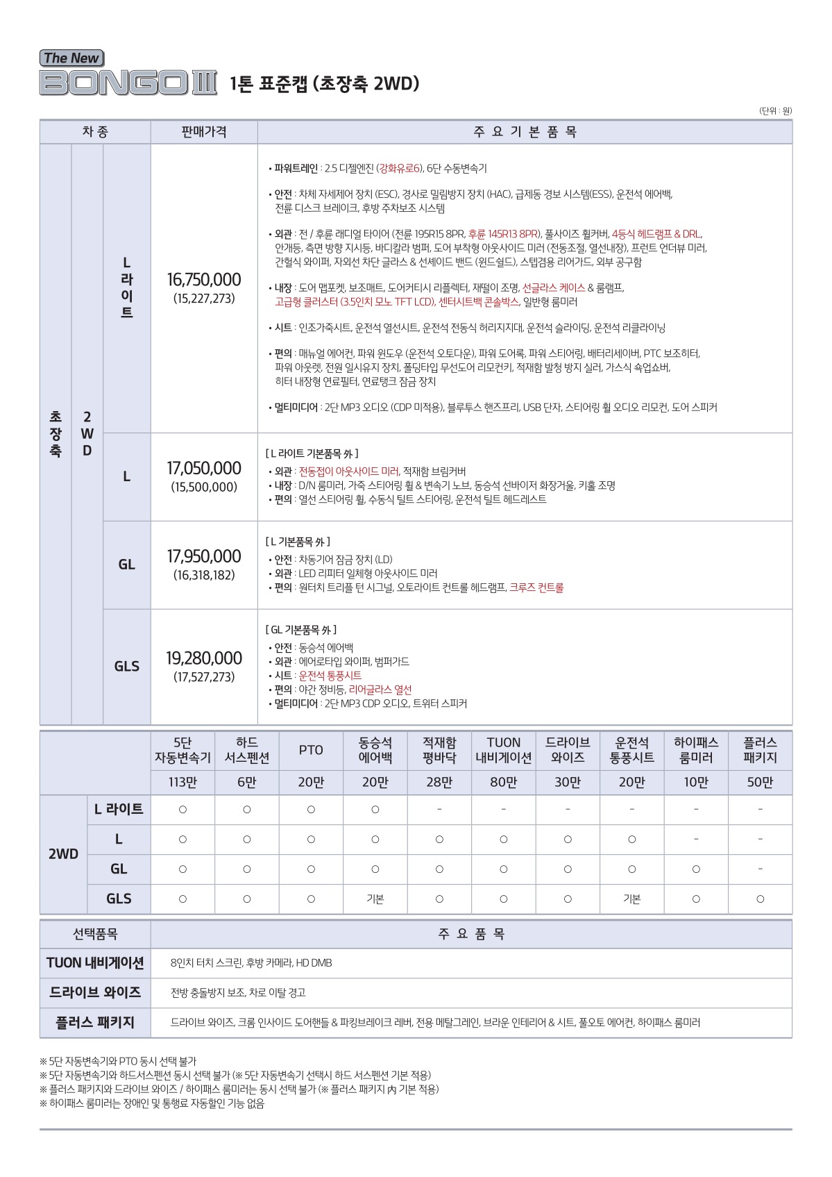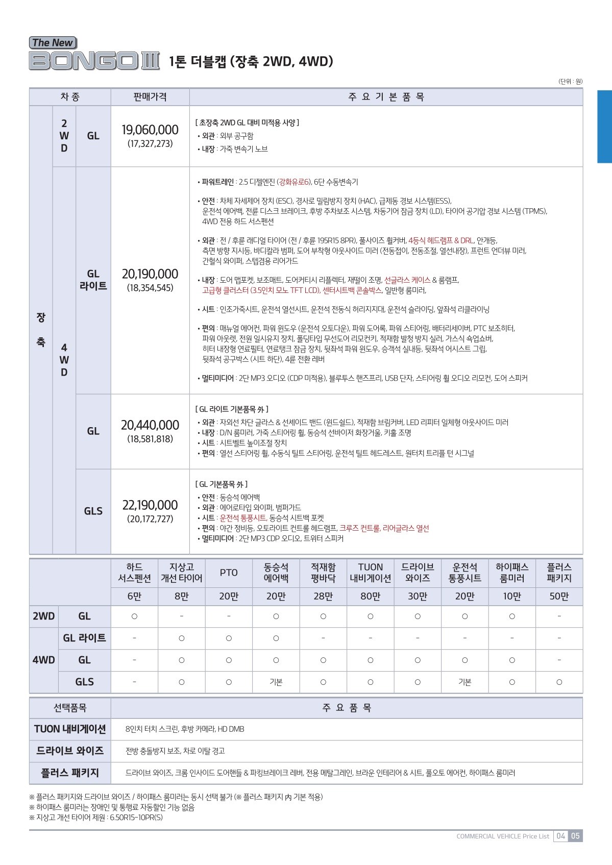 2019년 9월 봉고3 & 봉고3특장차 신차가격표 (더뉴봉고3 출시)