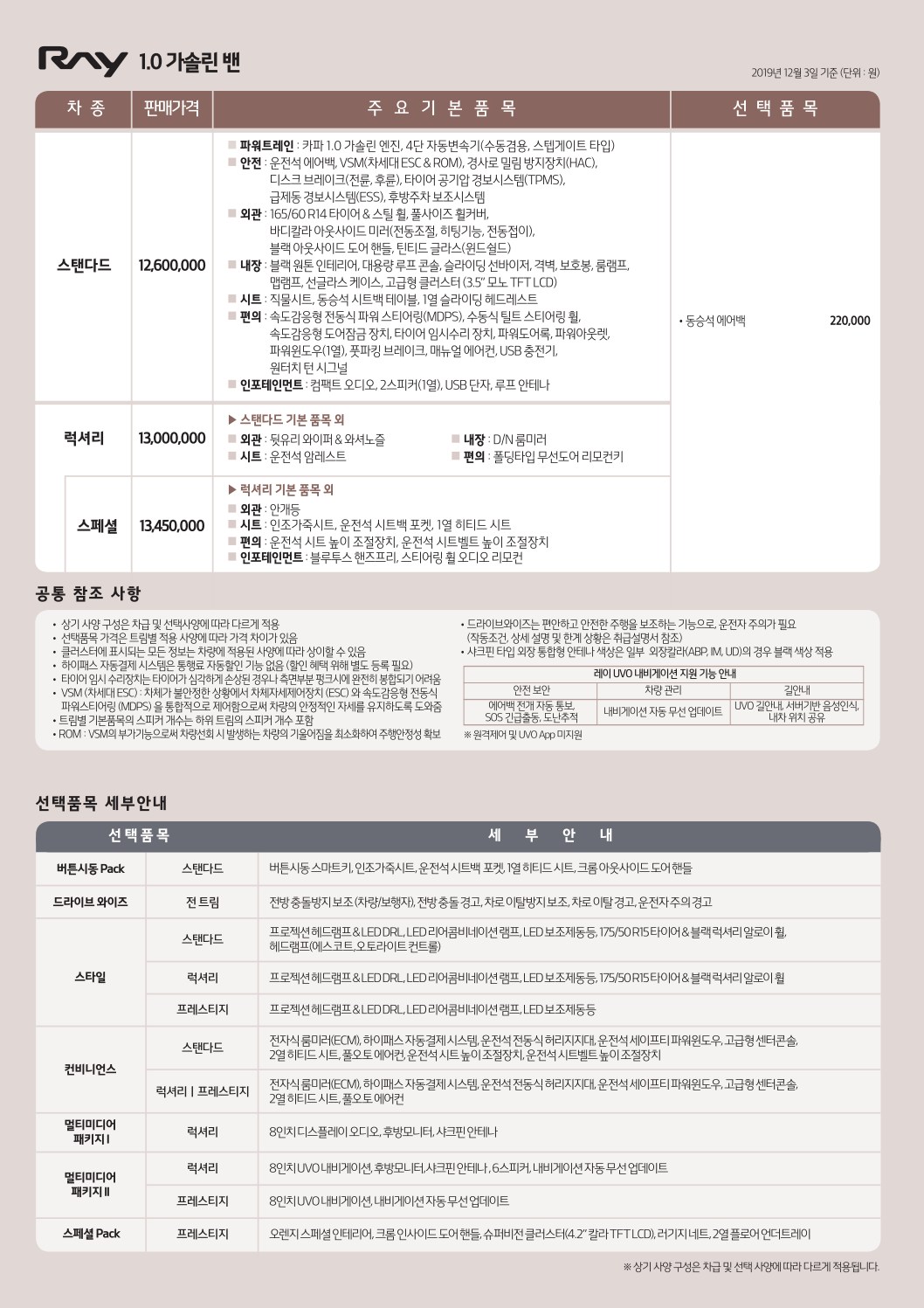 2019년 12월 레이 신차가격표 (2020년형 레이 출시)