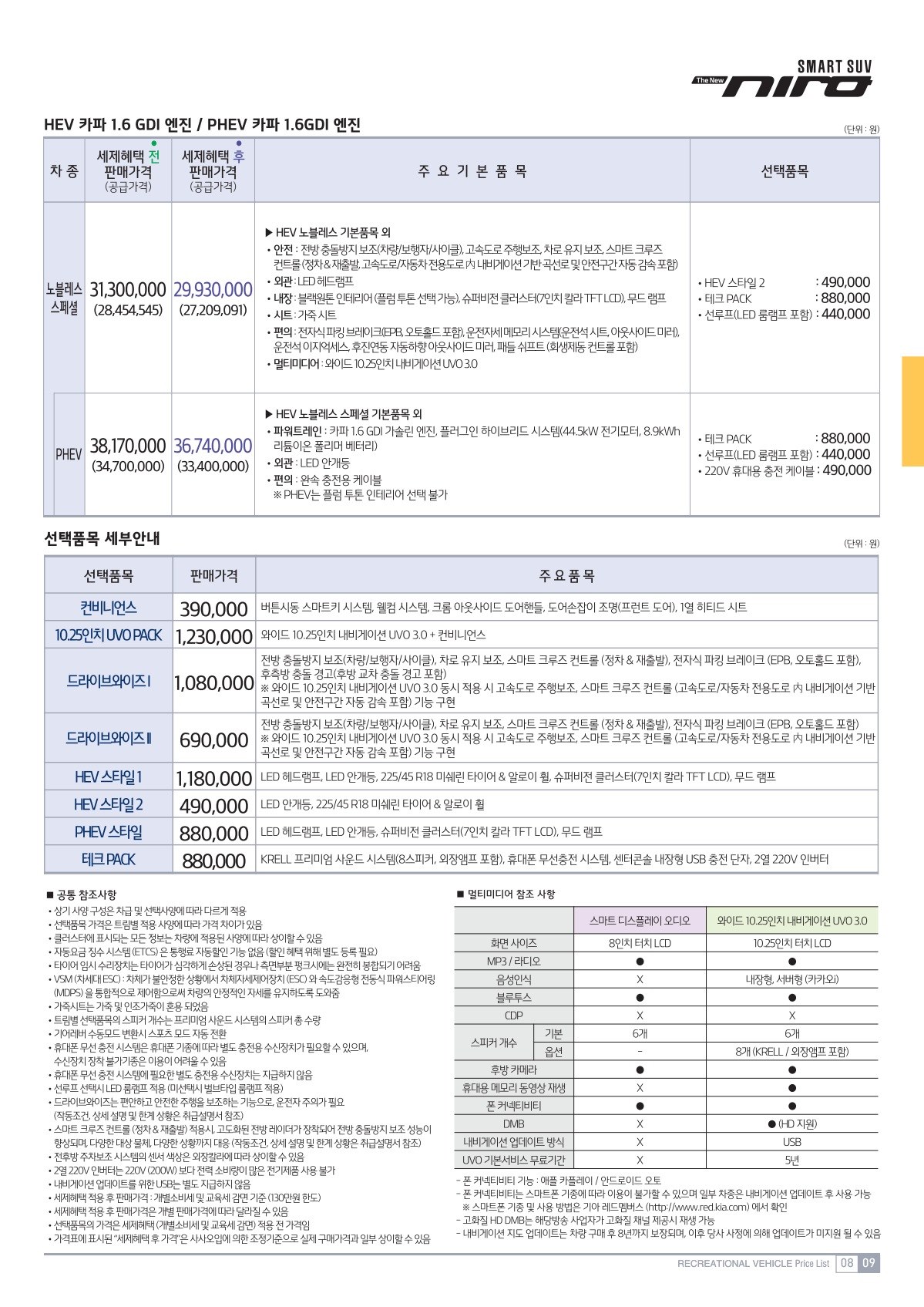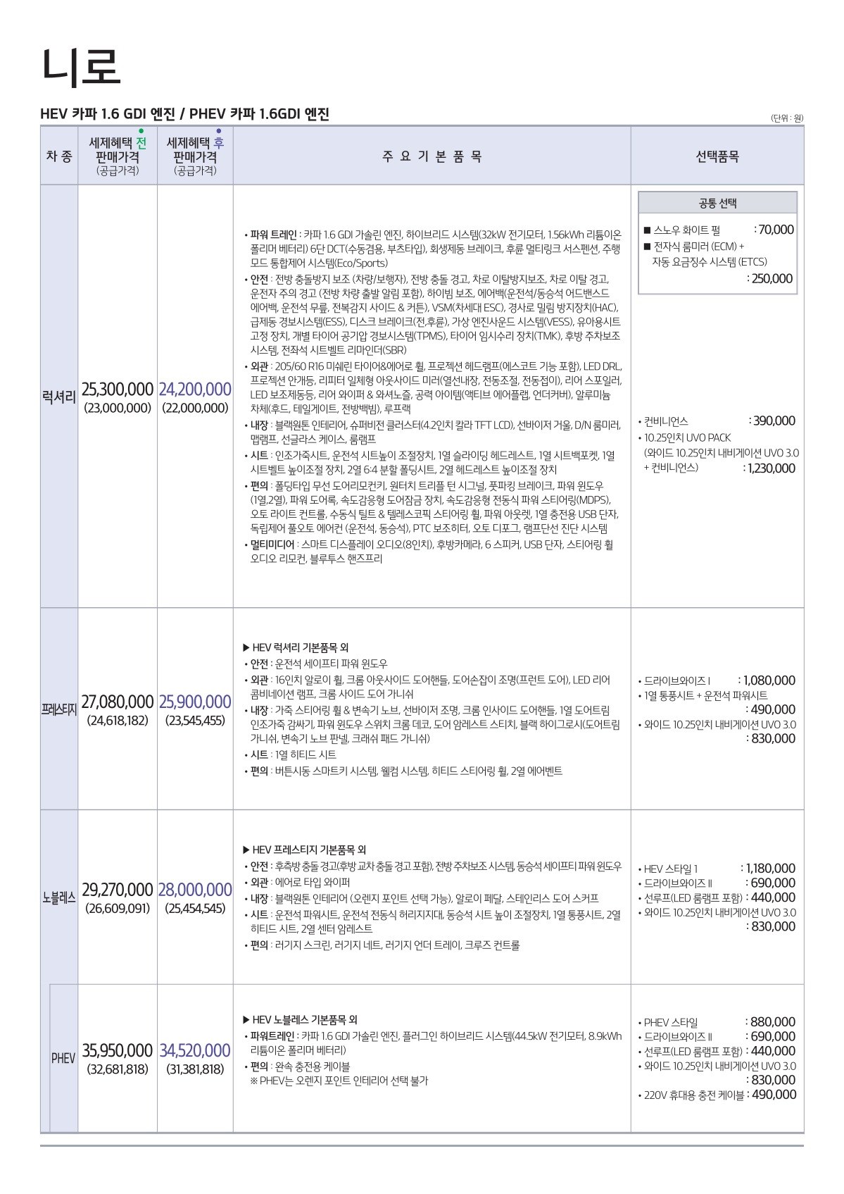 2019년 3월 니로HEV / 니로PHEV 가격표