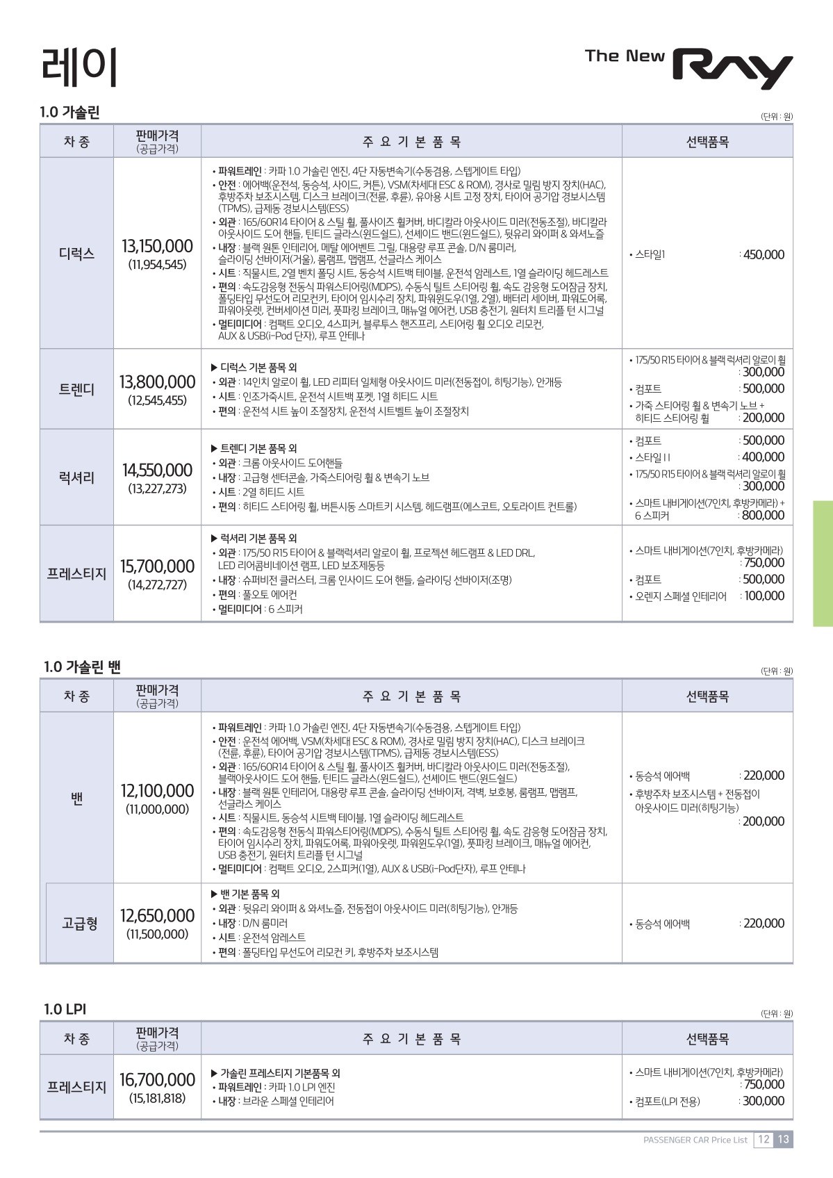※ 본 가격표의 모든 저작권은 해당 차량 제조사에 있습니다.