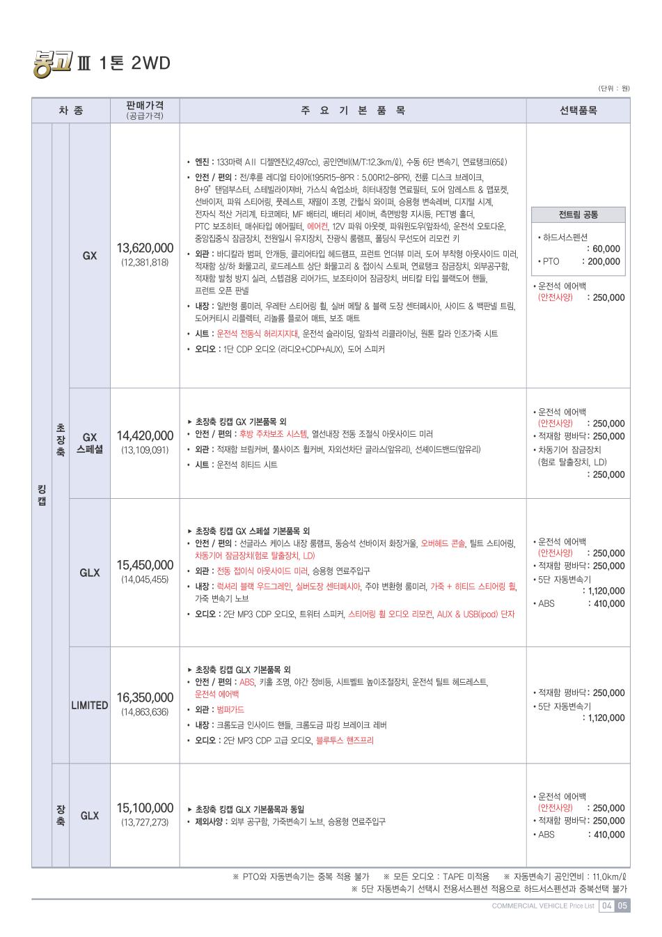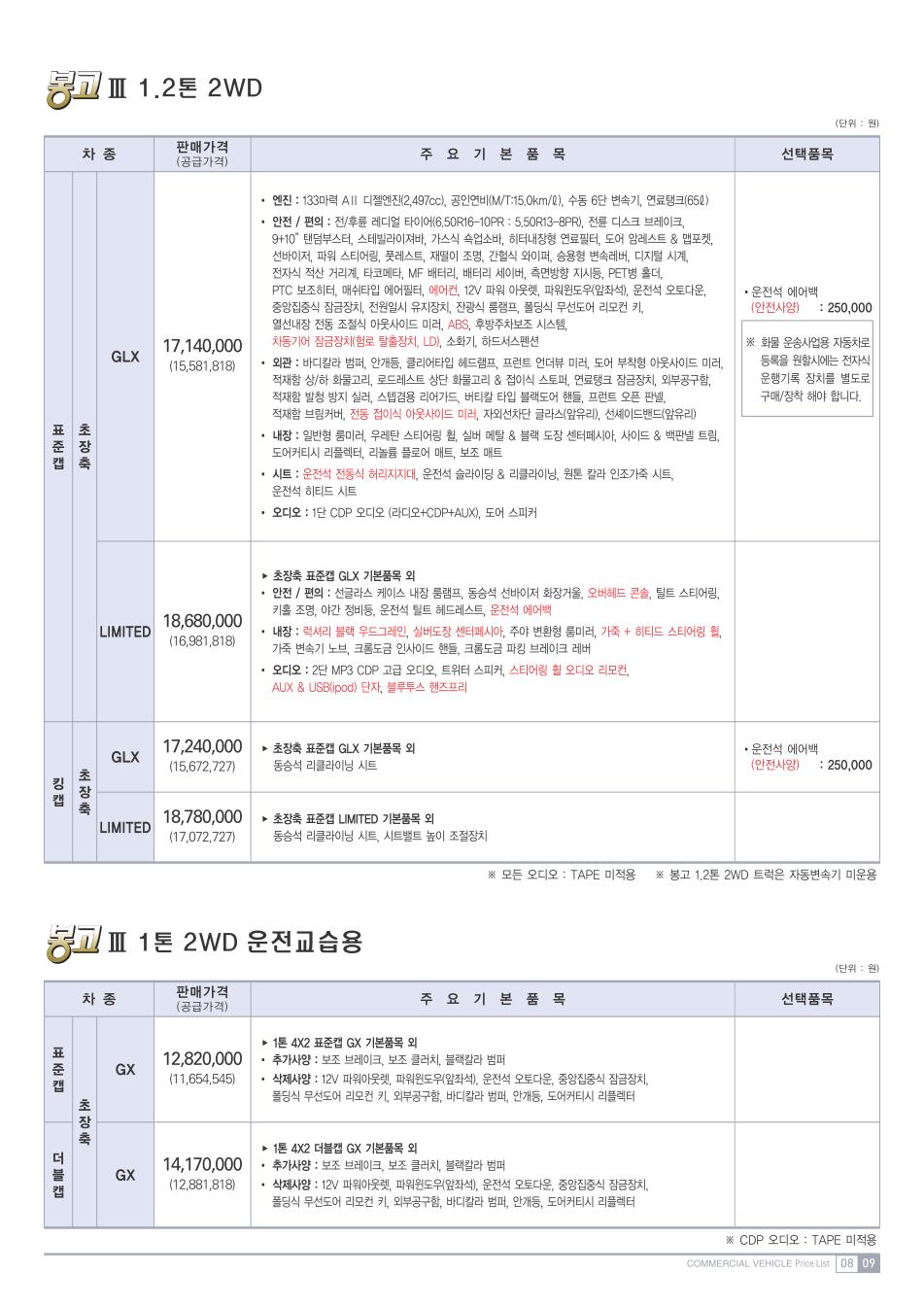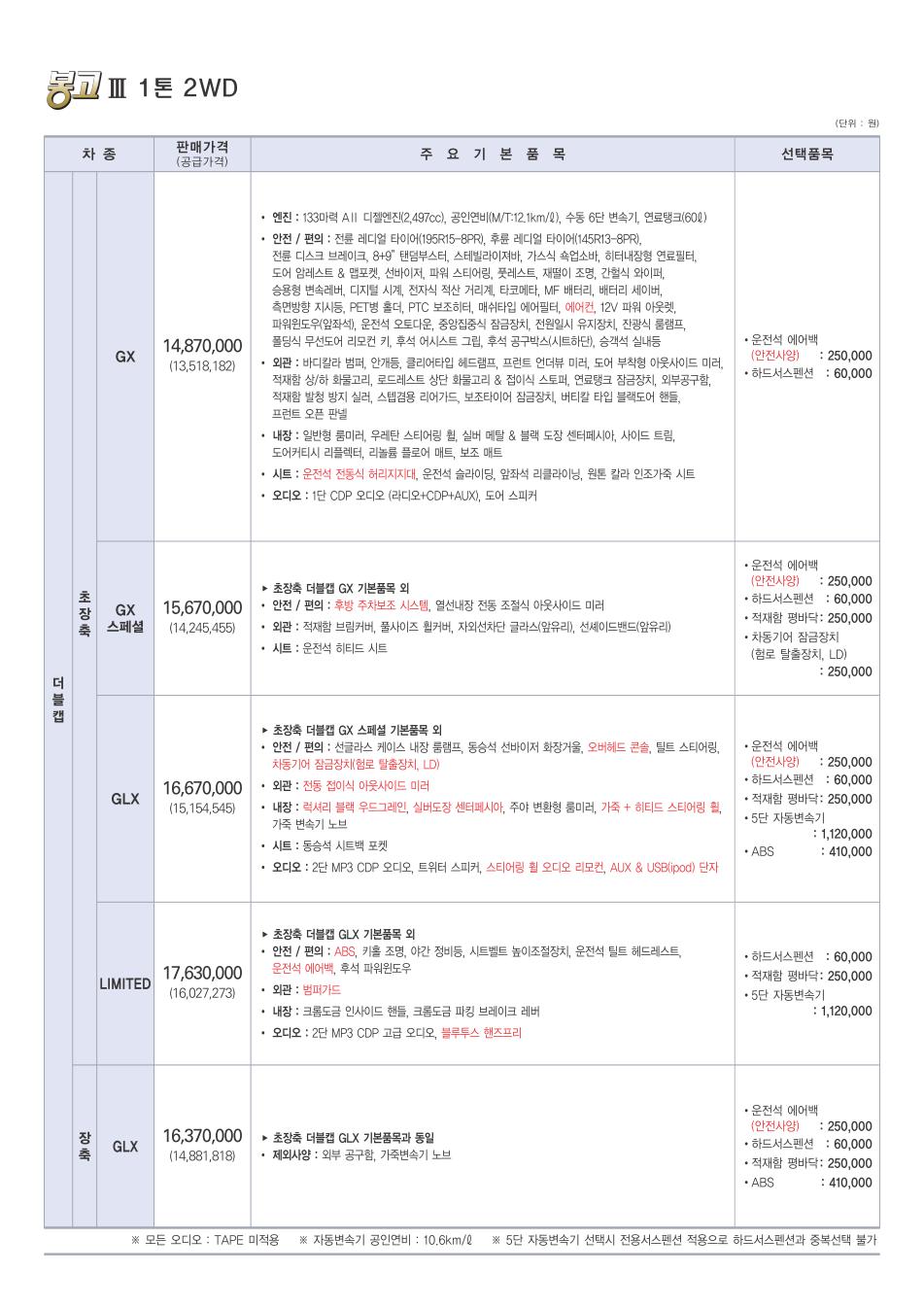 ※ 본 가격표의 모든 저작권은 해당 차량 제조사에 있습니다.