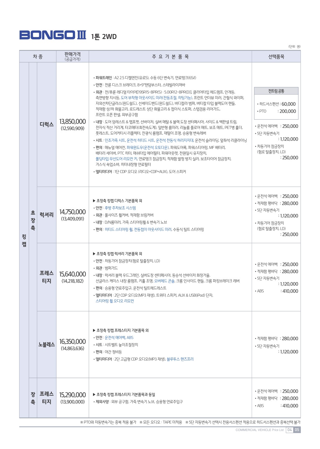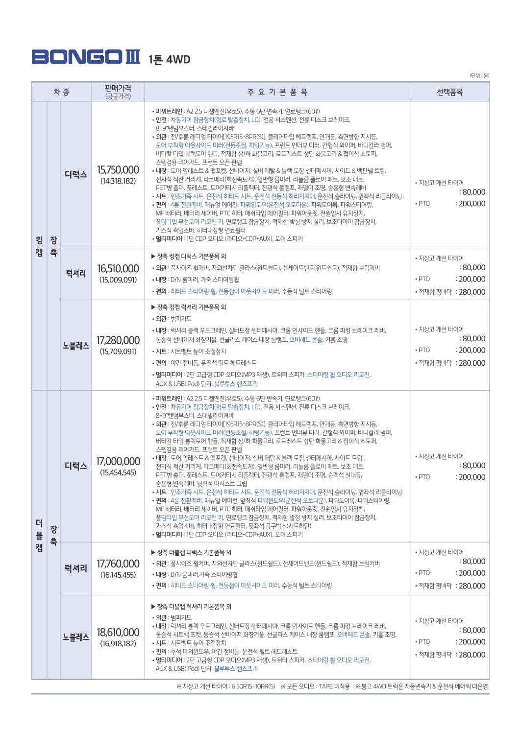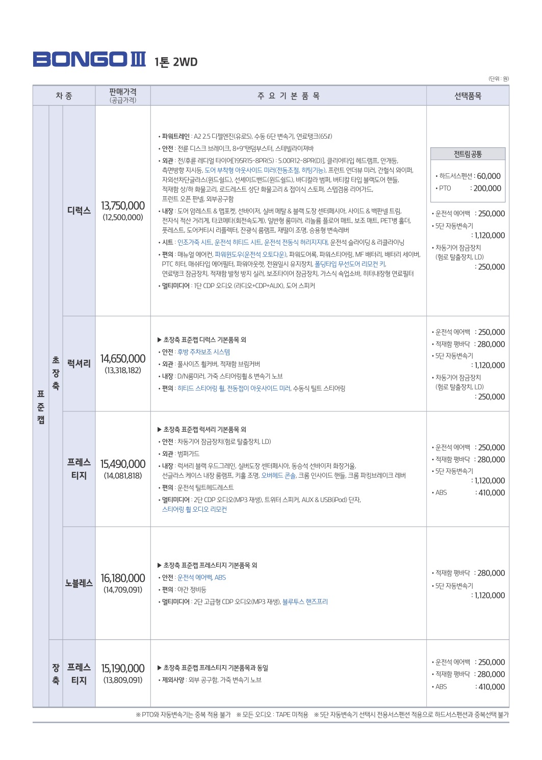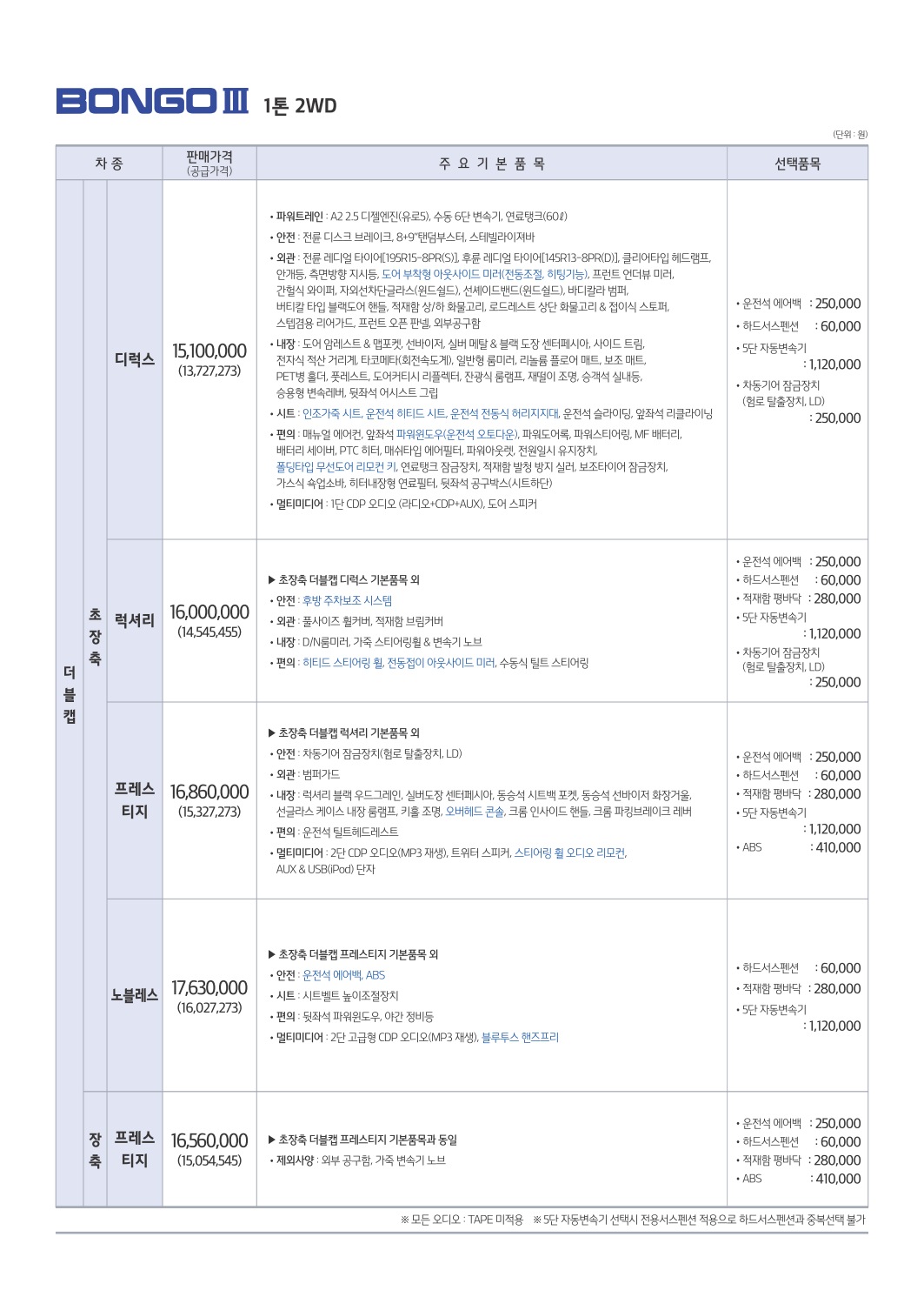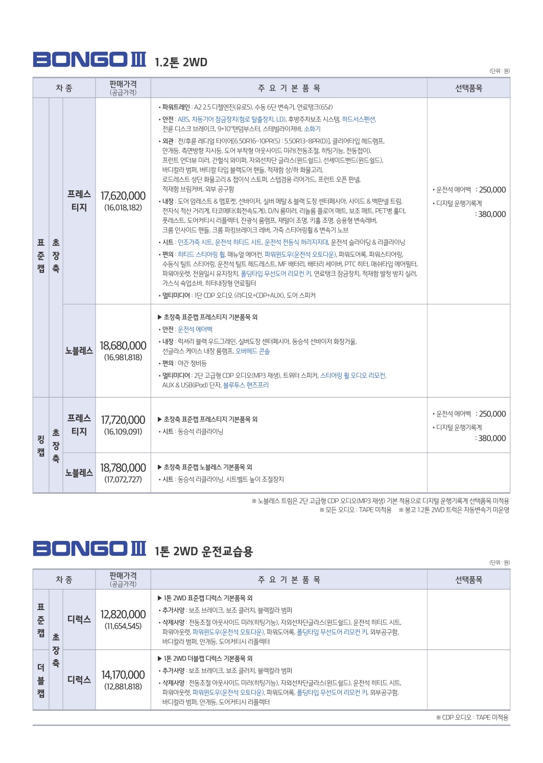 ※ 본 가격표의 모든 저작권은 해당 차량 제조사에 있습니다.