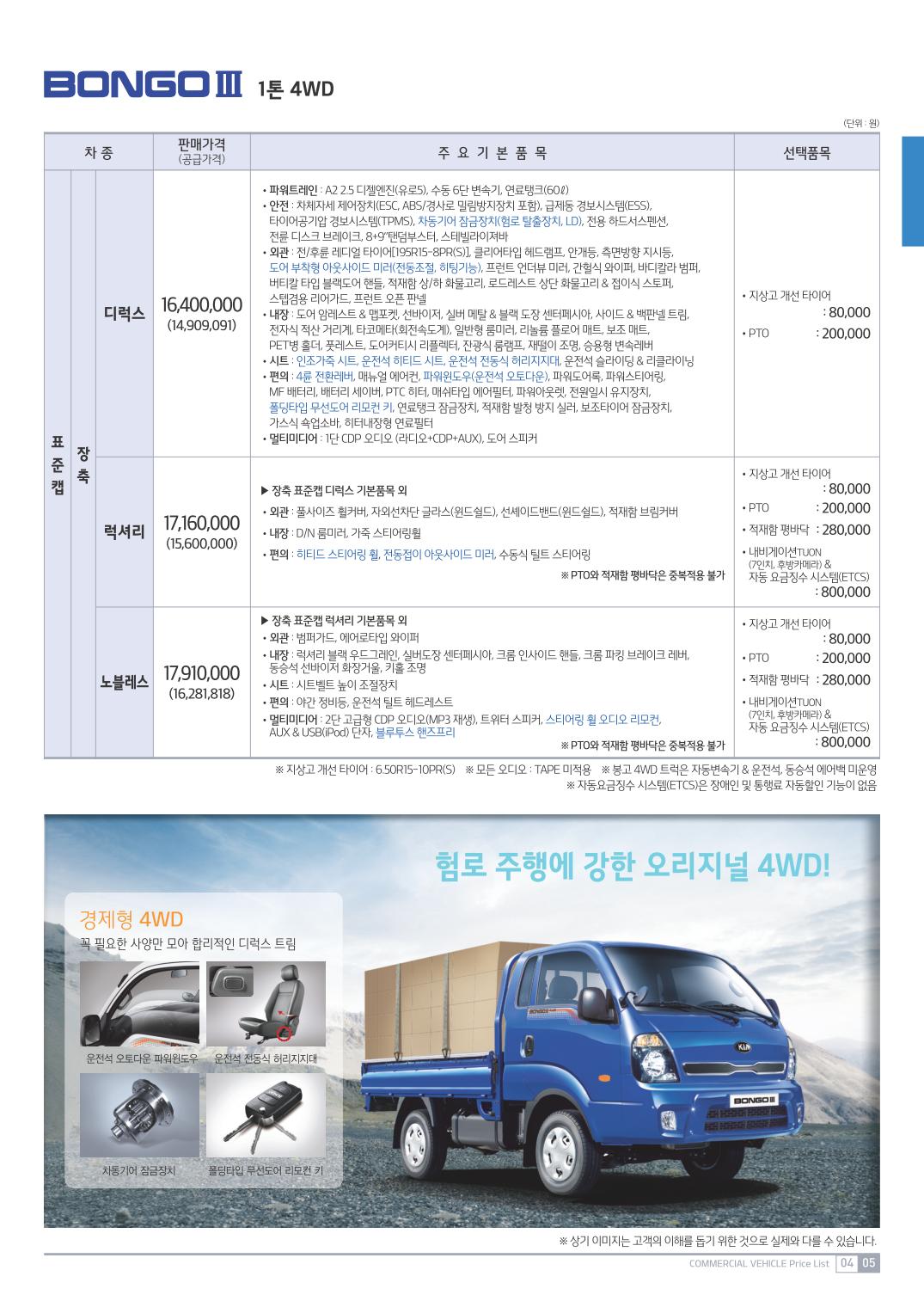 2015년 4월 봉고3 신차가격표