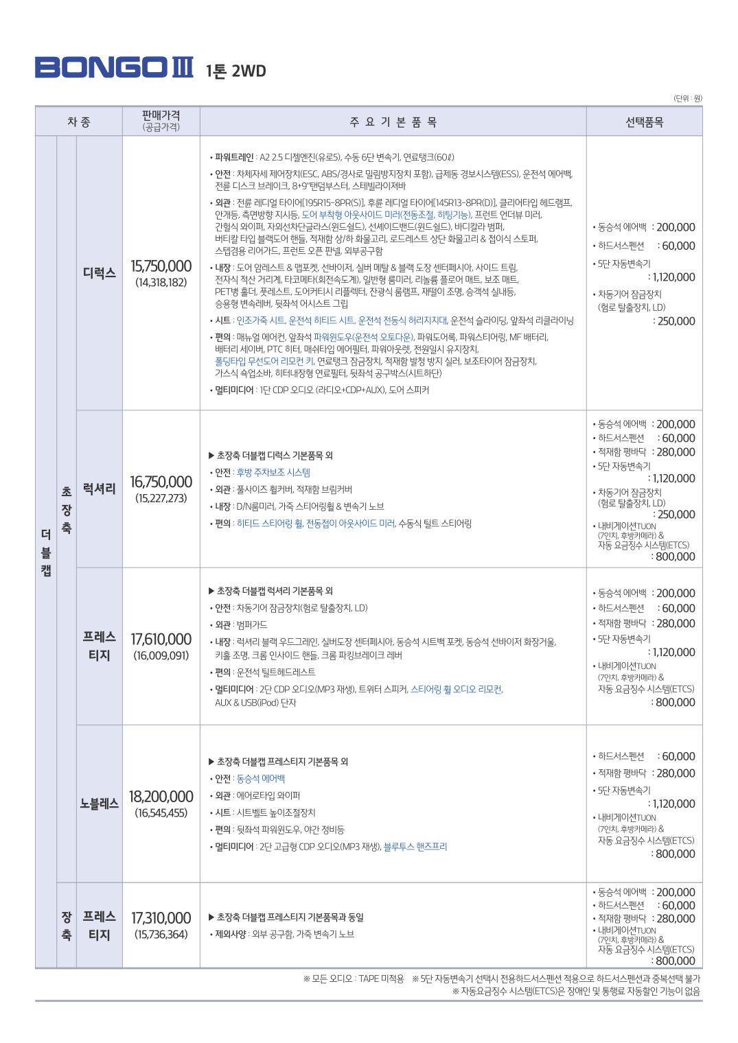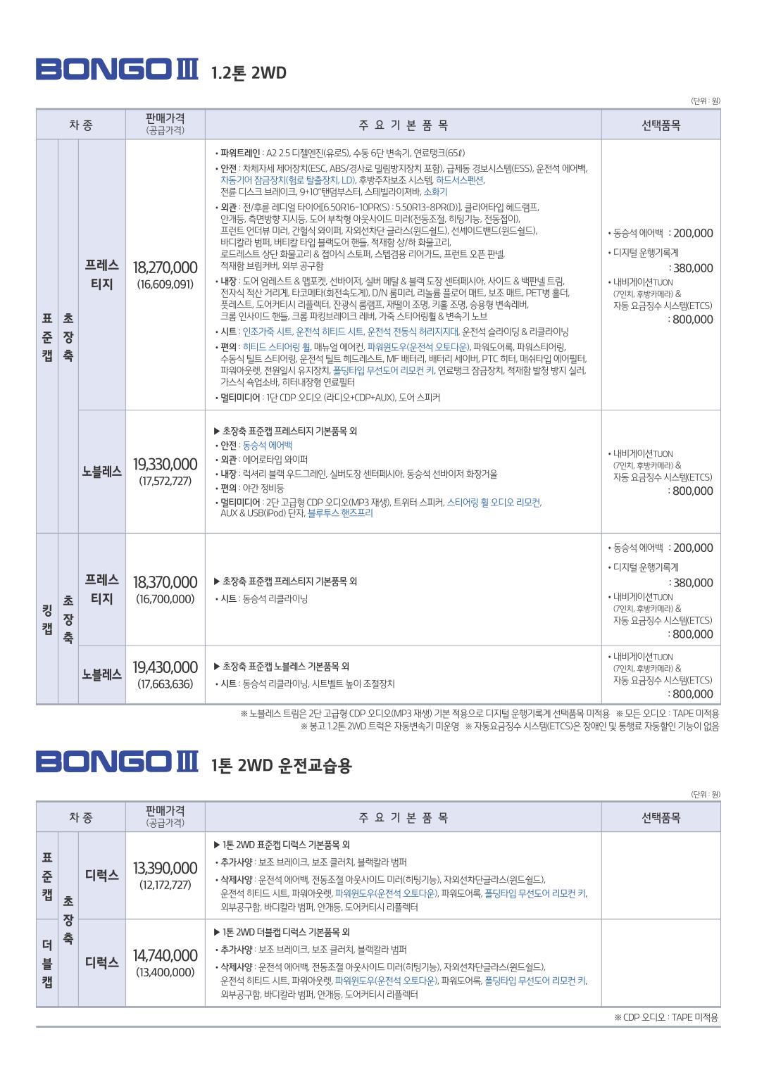 ※ 본 가격표의 모든 저작권은 해당 차량 제조사에 있습니다.