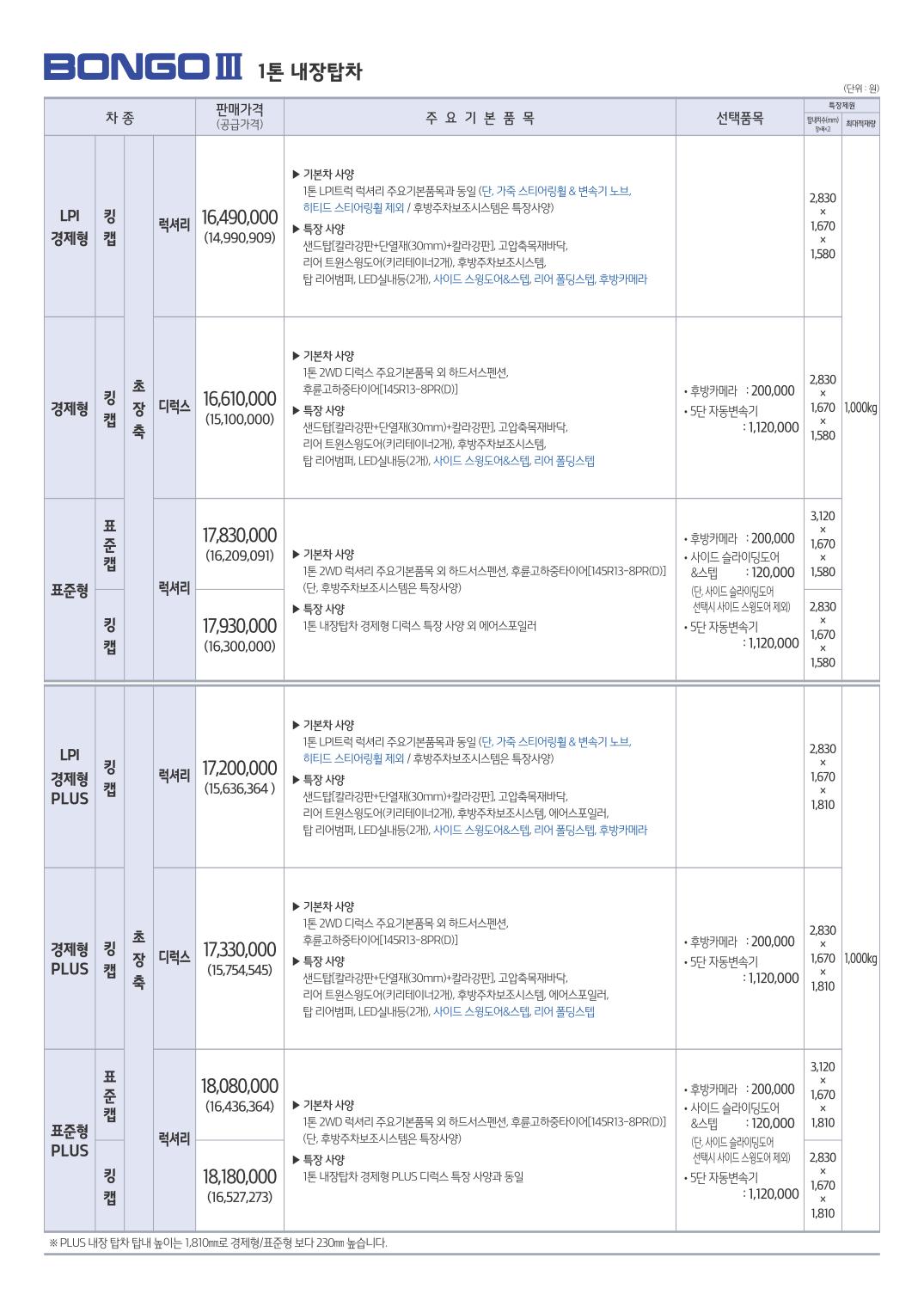 ※ 본 가격표의 모든 저작권은 해당 차량 제조사에 있습니다.