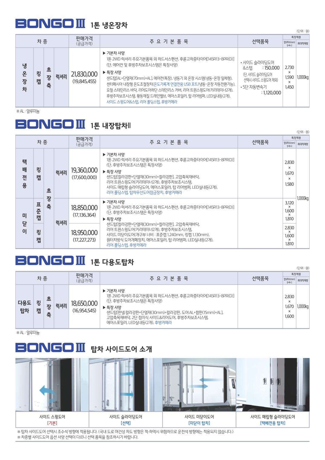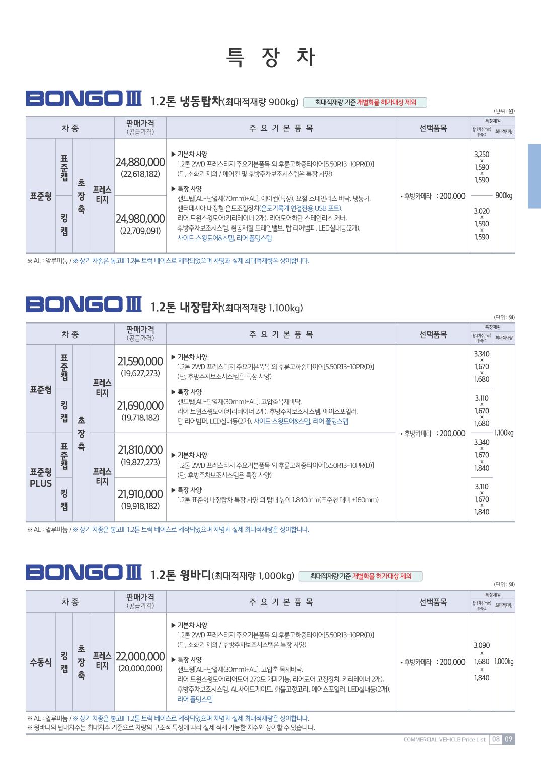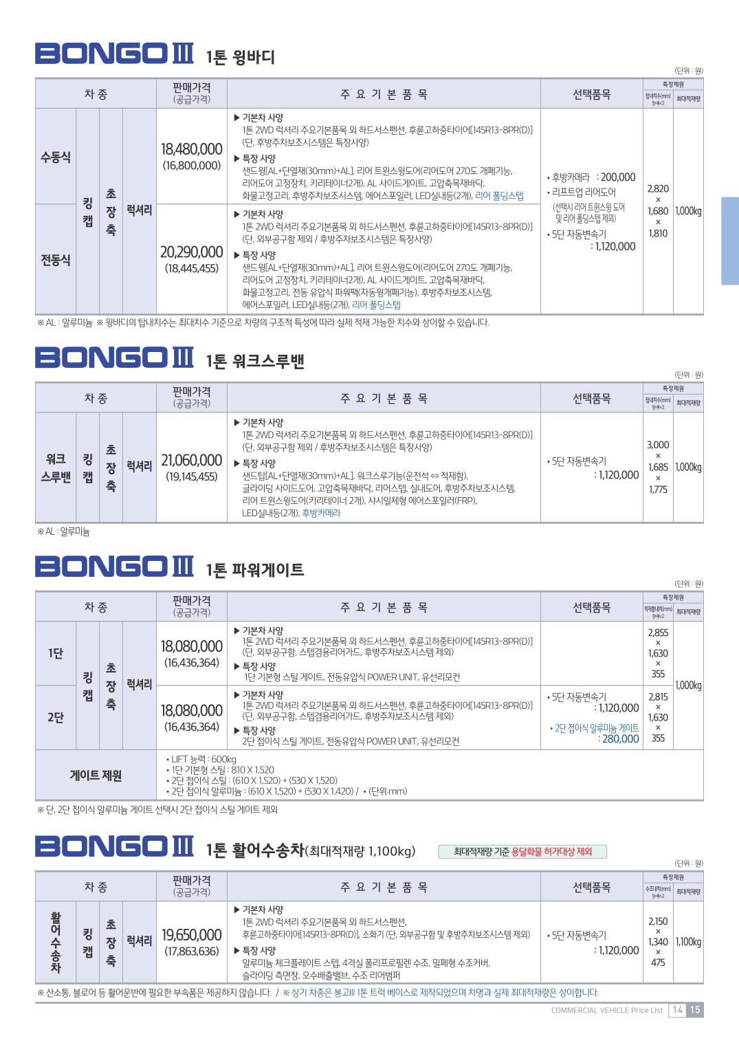 2015년 4월 봉고3 특장차 신차가격표