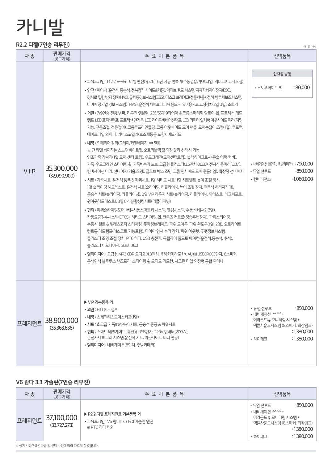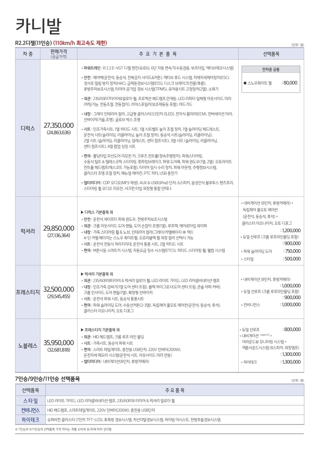 ※ 본 가격표의 모든 저작권은 해당 차량 제조사에 있습니다.