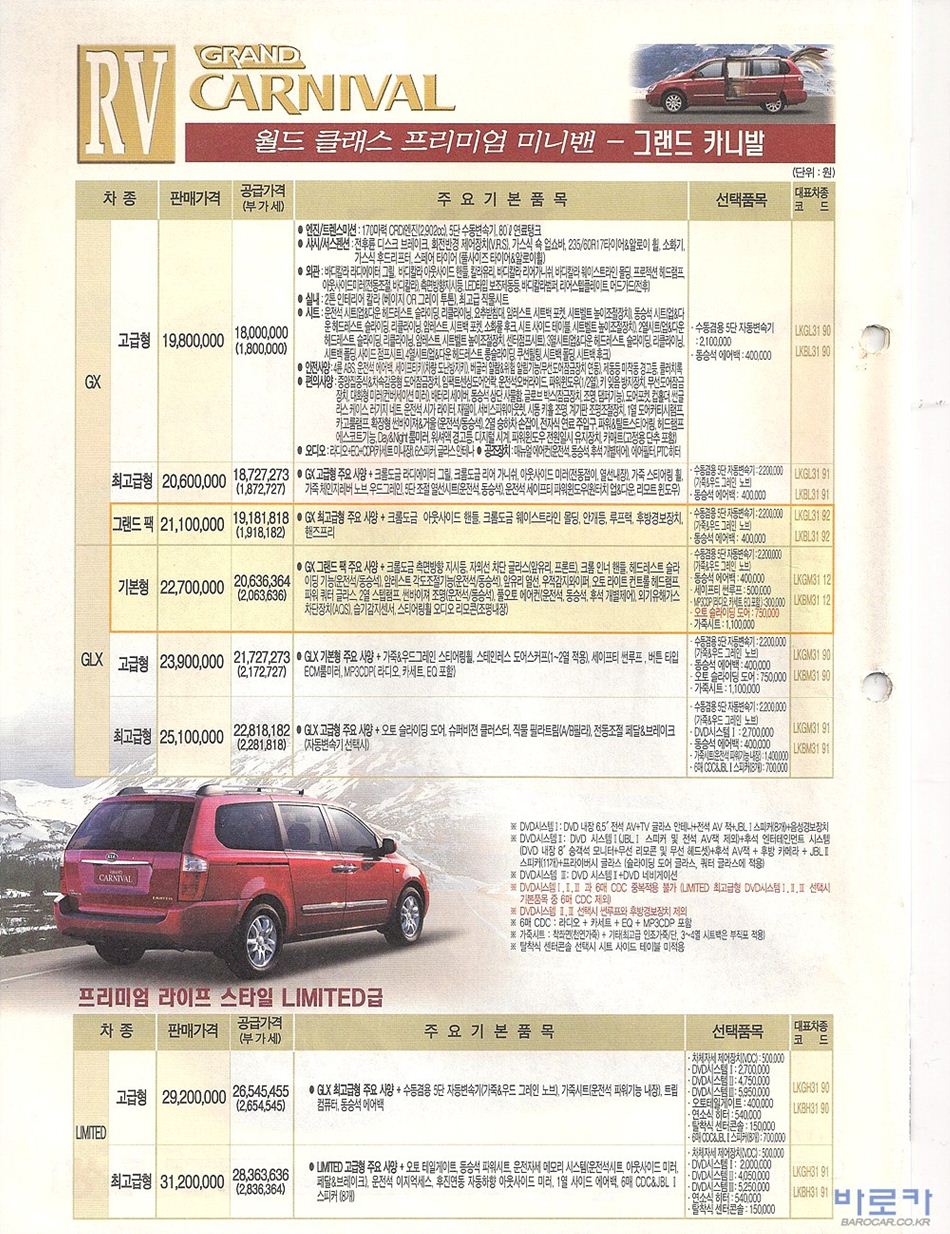 2005년 11월 그랜드카니발(VQ) 신차가격표