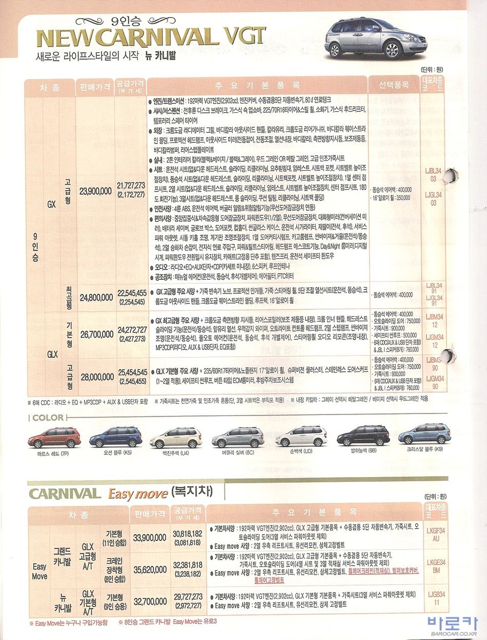 2009년 5월 그랜드카니발 / 뉴카니발 신차가격표