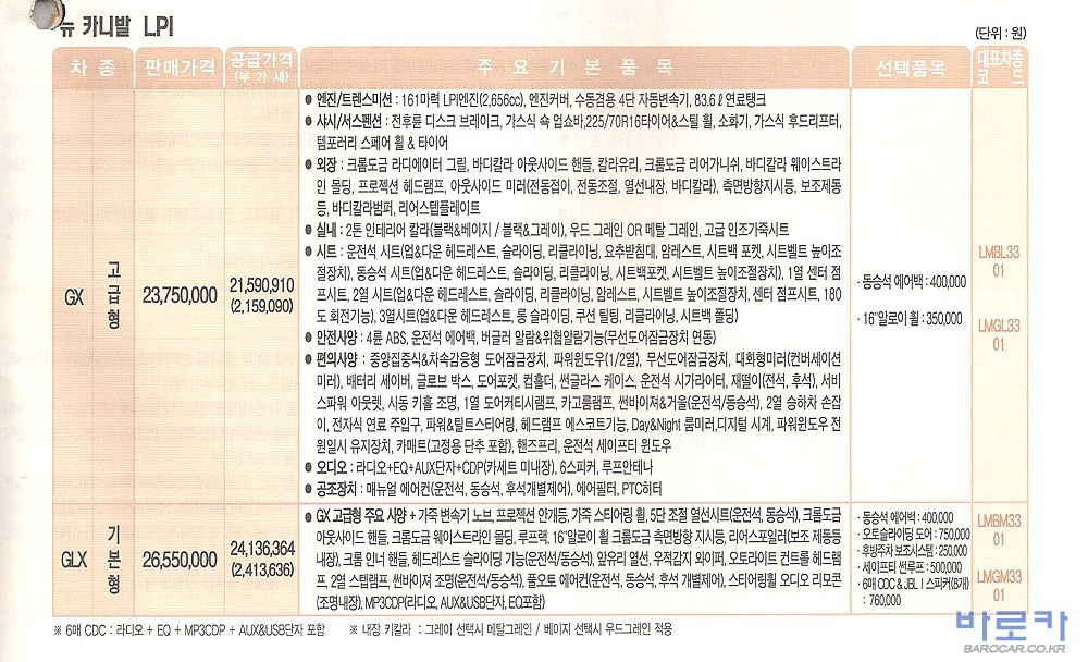 2008년 1월 뉴카니발 신차가격표