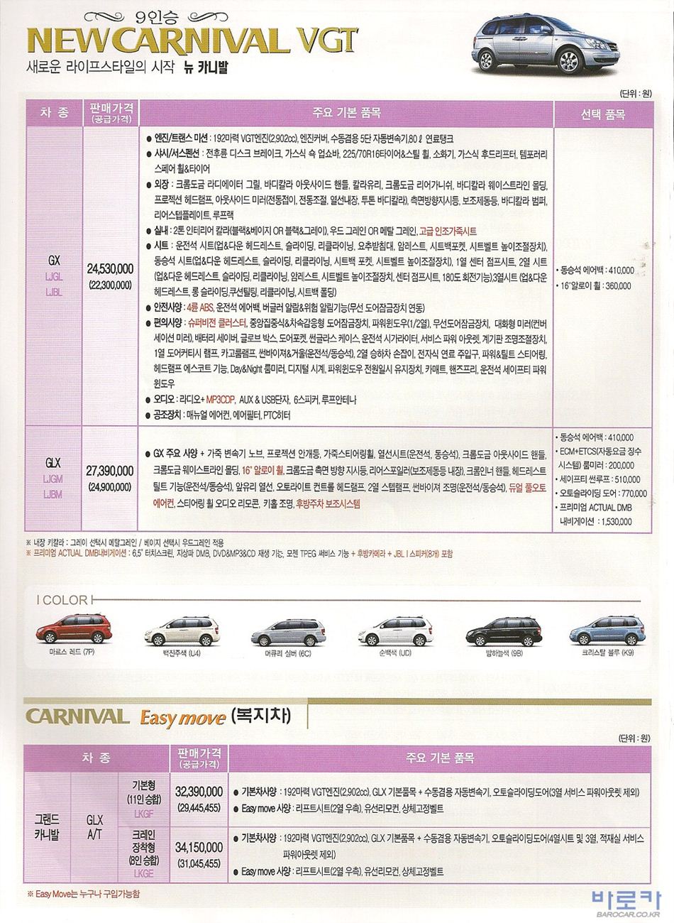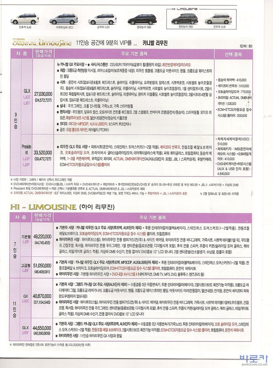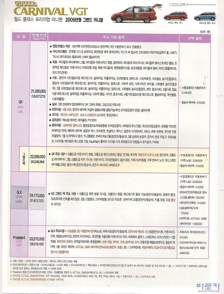 2009년 5월 그랜드카니발 / 뉴카니발 신차가격표