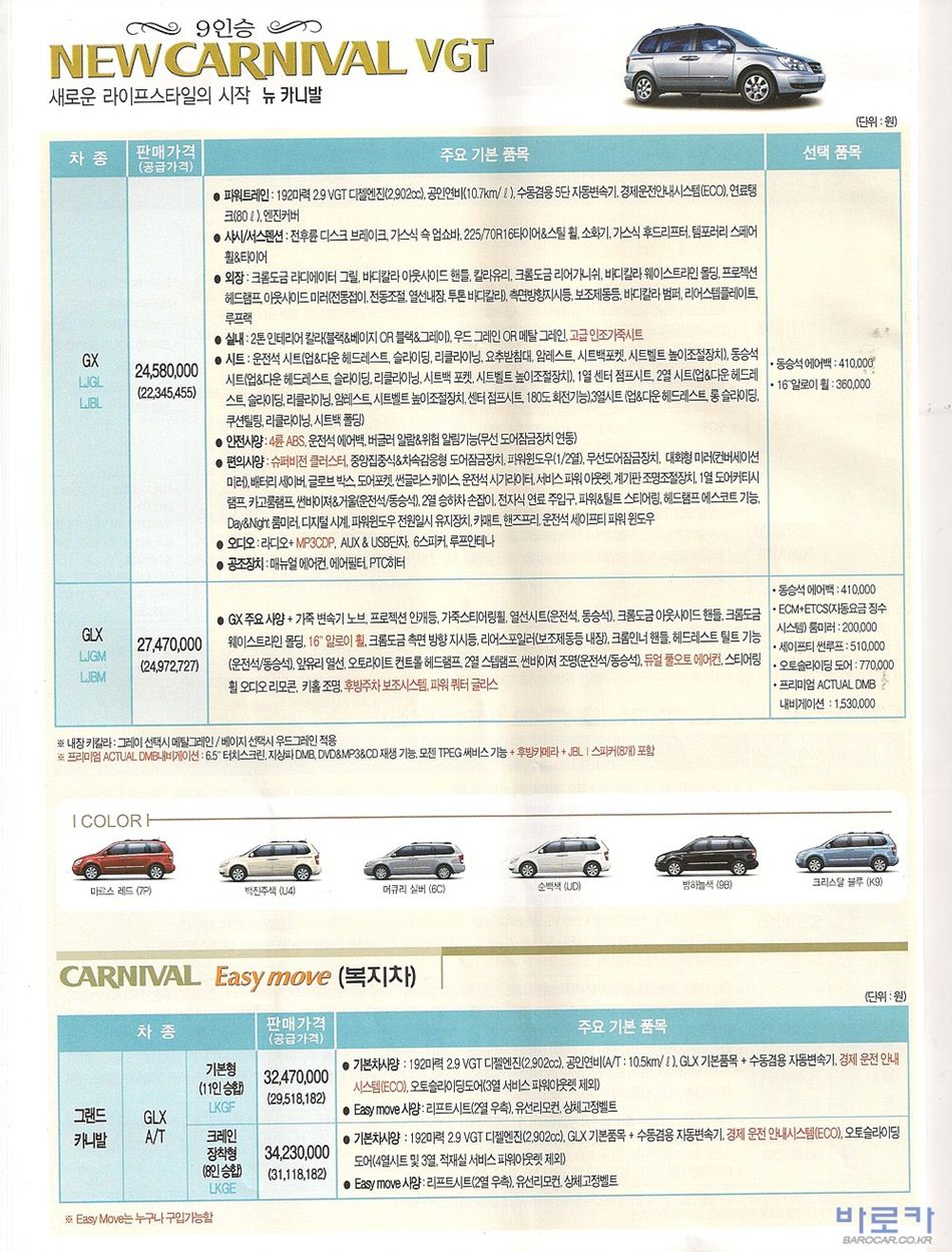 2009년 10월 그랜드카니발 / 뉴카니발 신차가격표