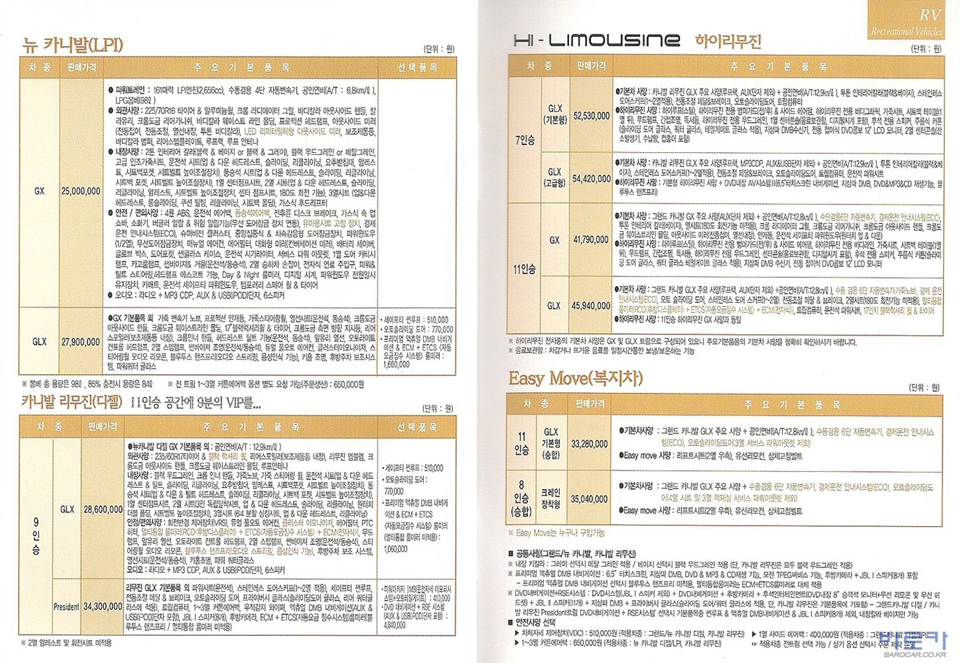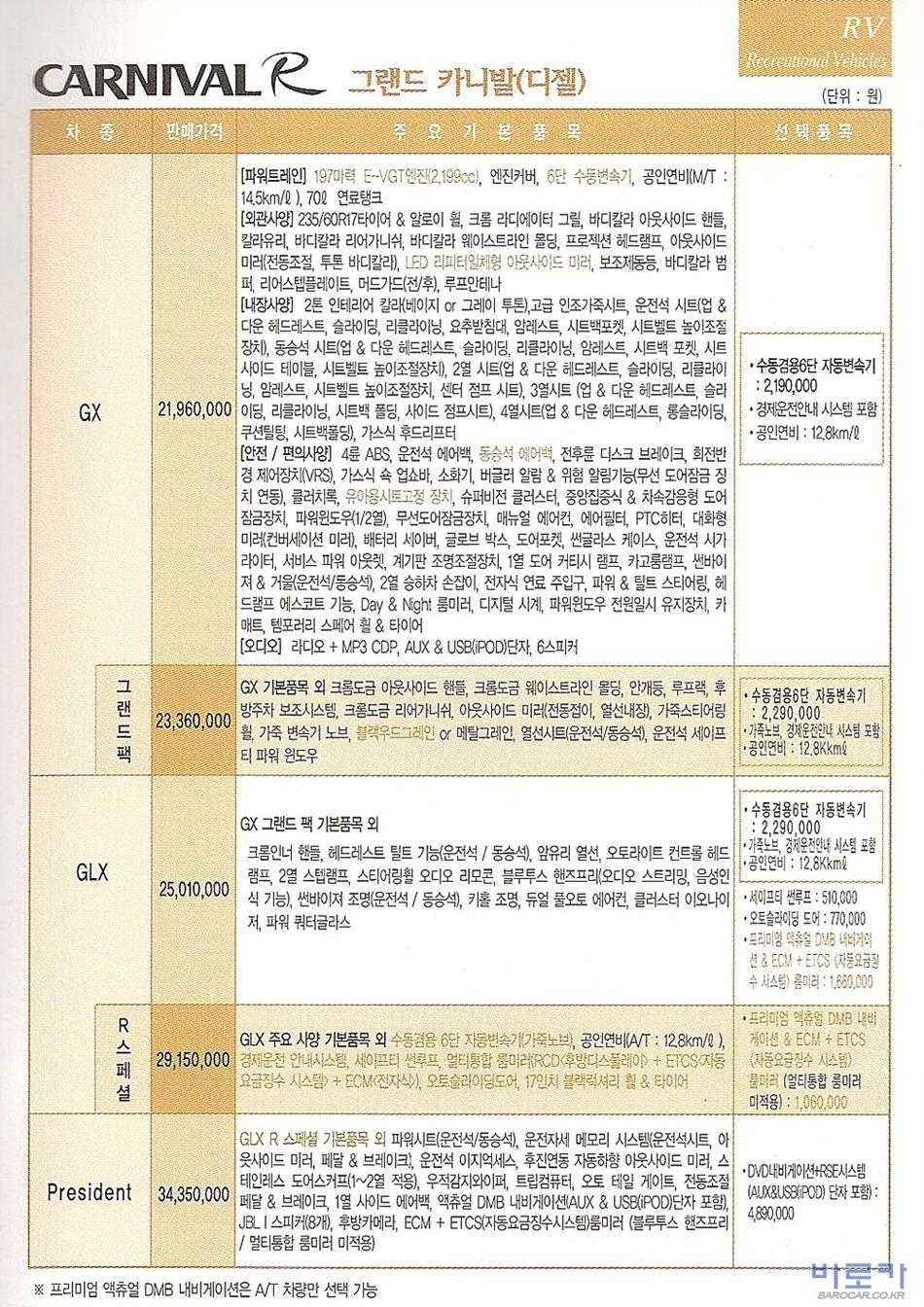 2010년 12월 그랜드카니발R / 뉴카니발R 신차가격표 (2011년형)