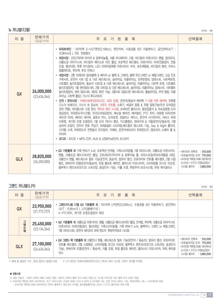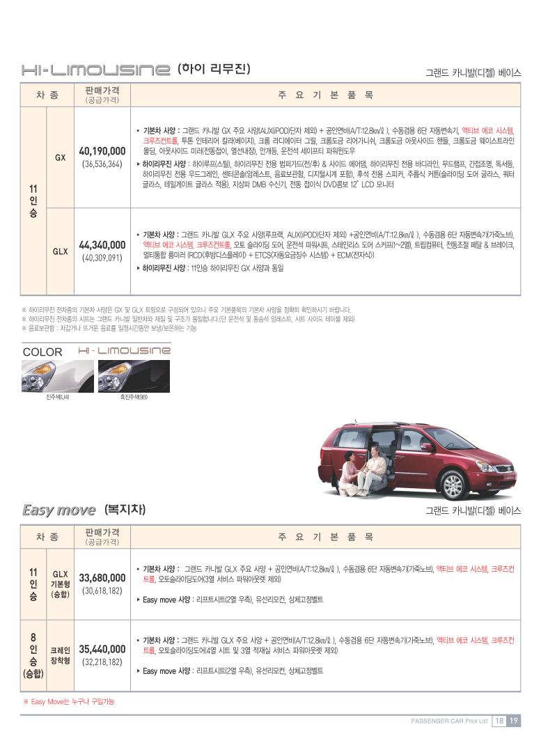 2010년 12월 그랜드카니발R / 뉴카니발R 신차가격표 (2011년형)