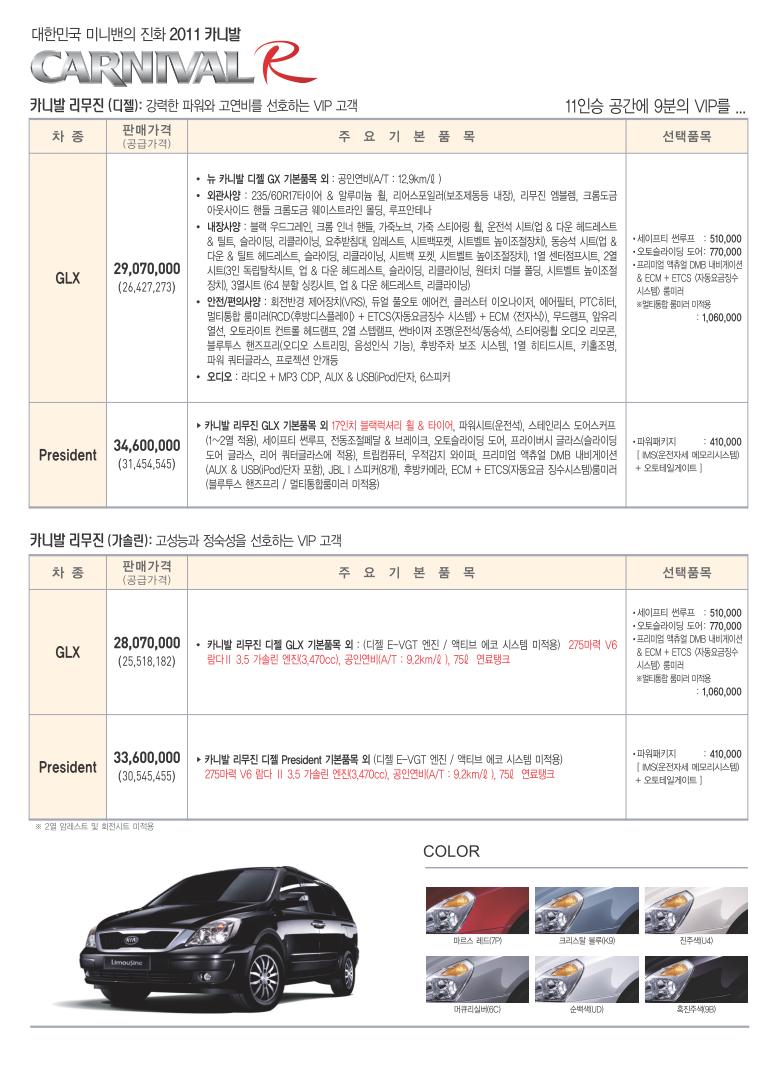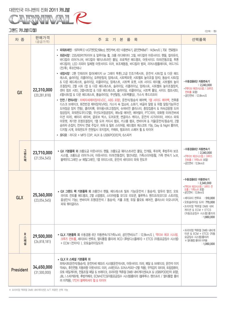 2011년 6월 그랜드카니발R / 뉴카니발R 신차가격표