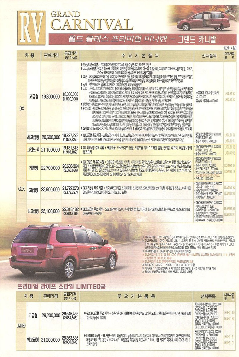 2005년 11월 그랜드카니발(VQ) 신차가격표