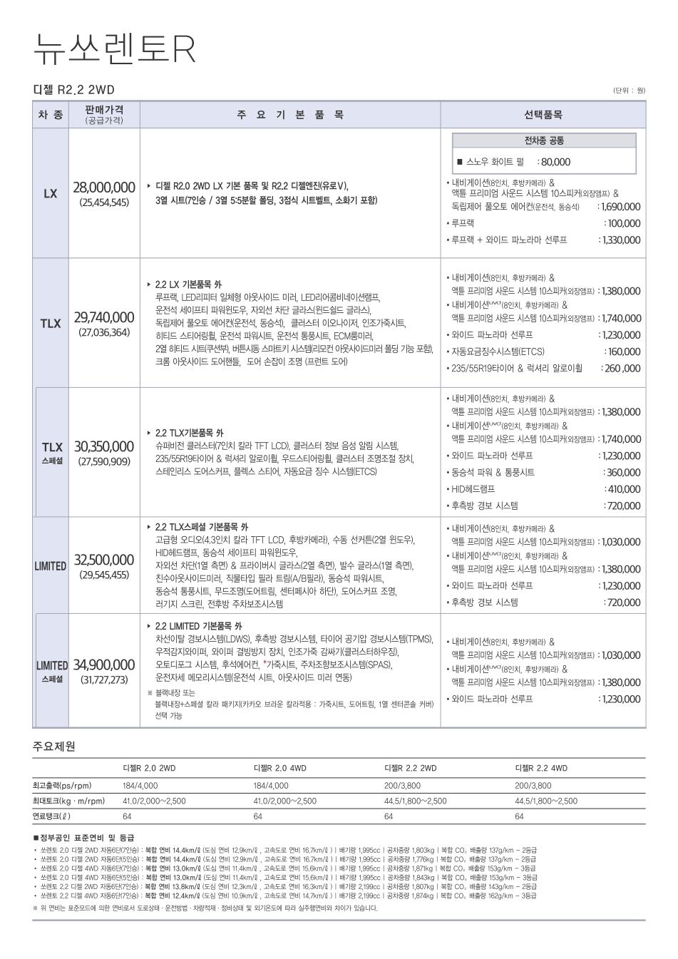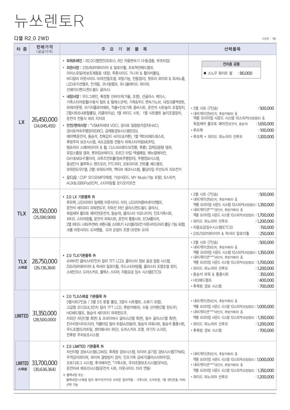 ※ 본 가격표의 모든 저작권은 해당 차량 제조사에 있습니다.