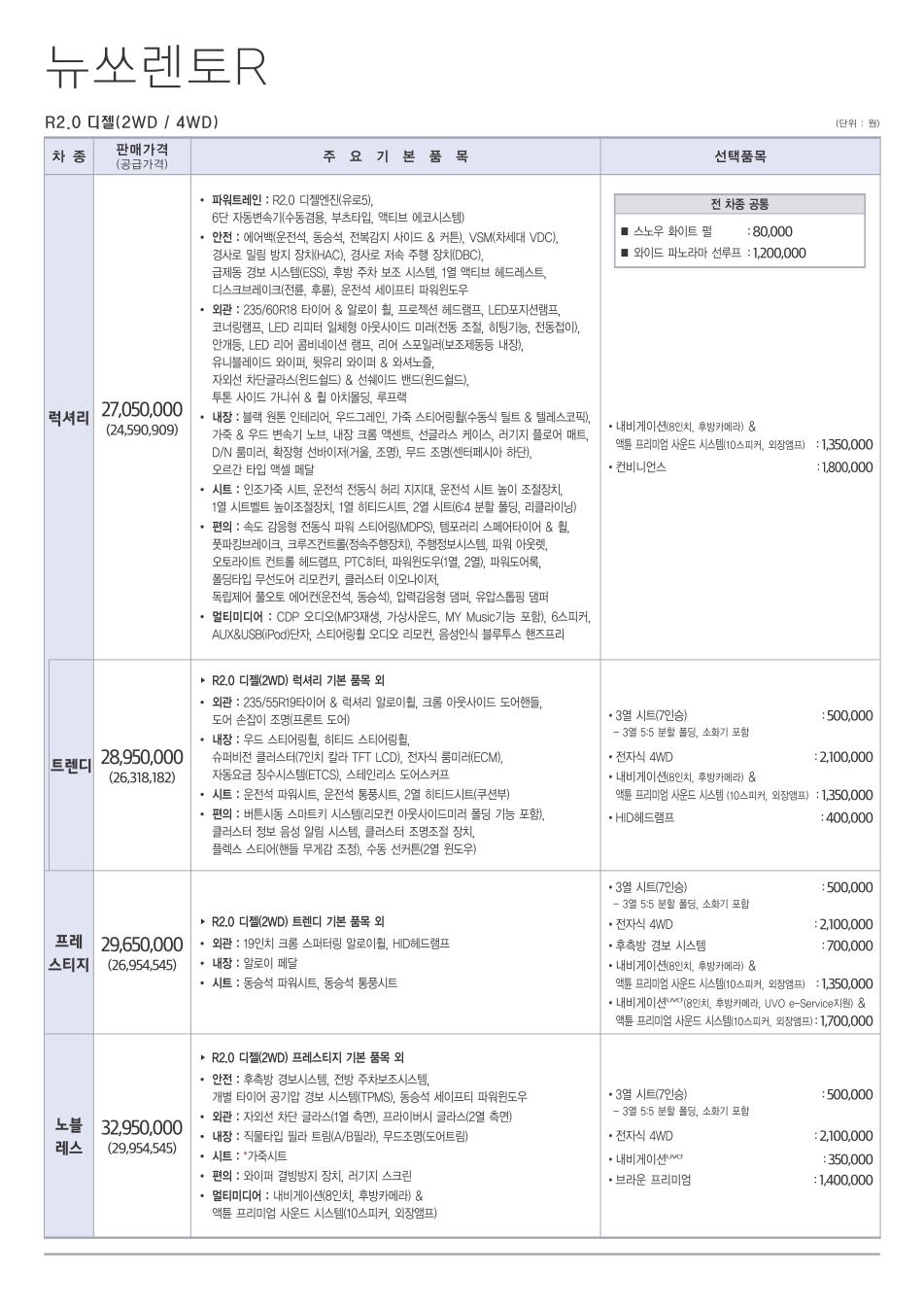※ 본 가격표의 모든 저작권은 해당 차량 제조사에 있습니다.