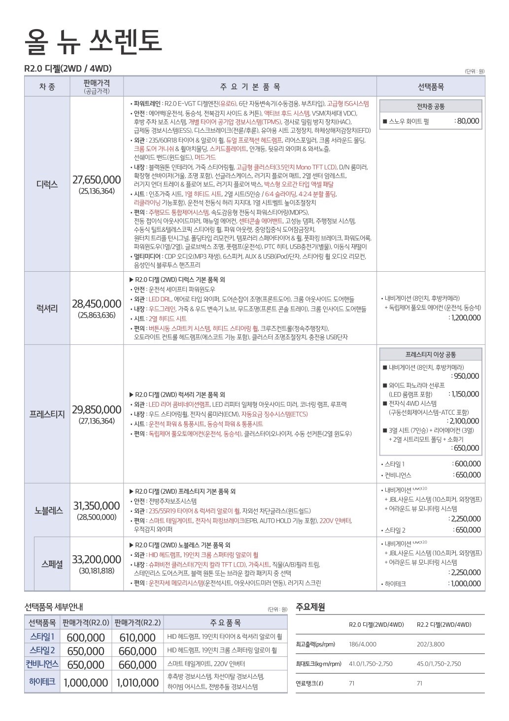 ※ 본 가격표의 모든 저작권은 해당 차량 제조사에 있습니다.
