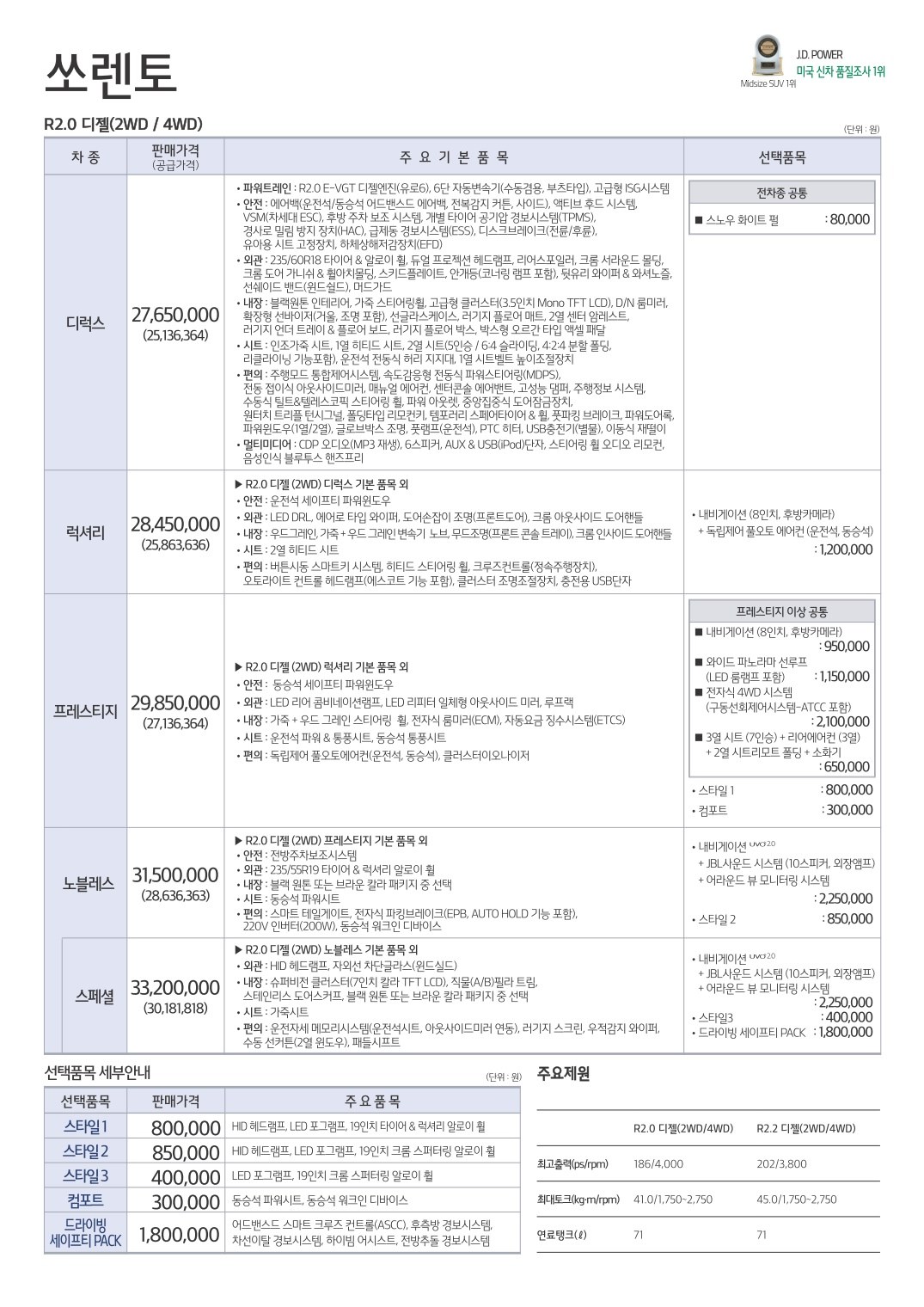 ※ 본 가격표의 모든 저작권은 해당 차량 제조사에 있습니다.