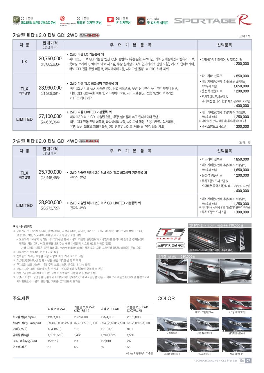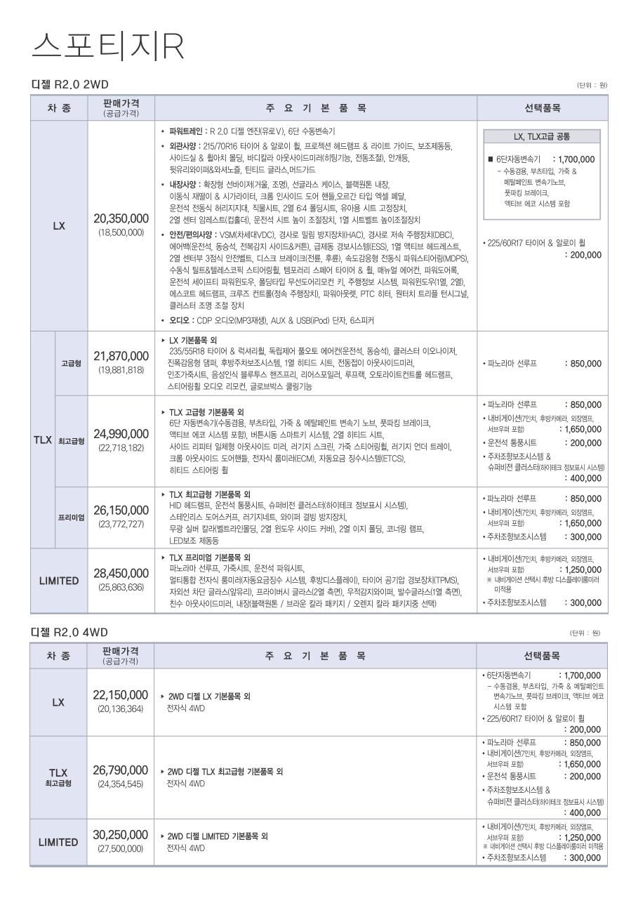 2011년 3월 스포티지R 신차가격표