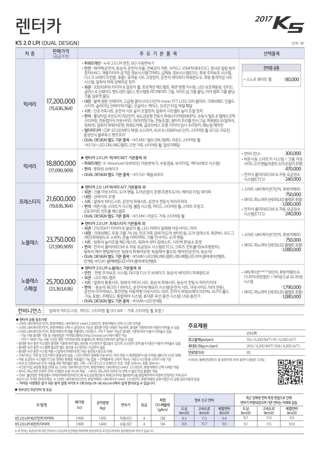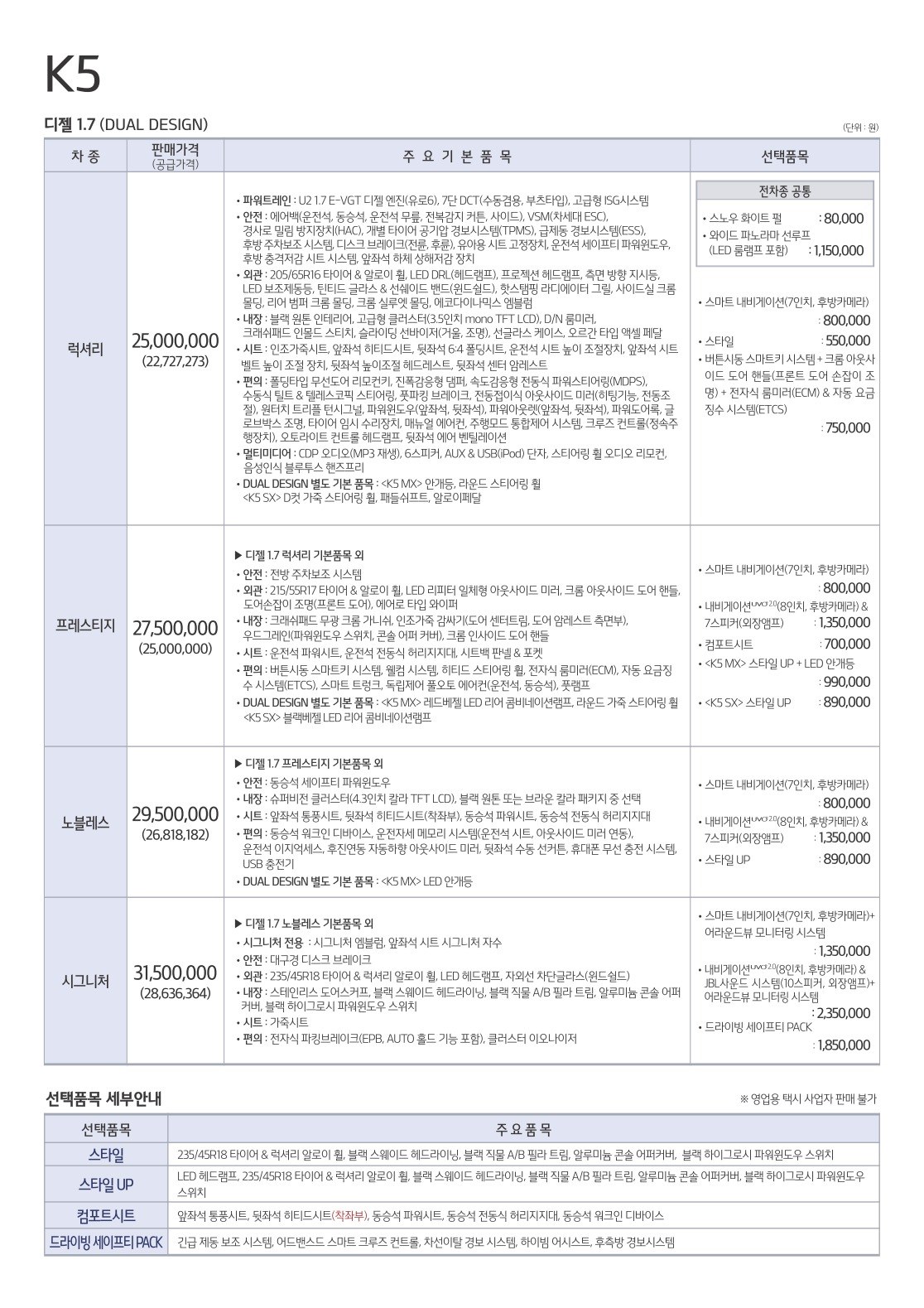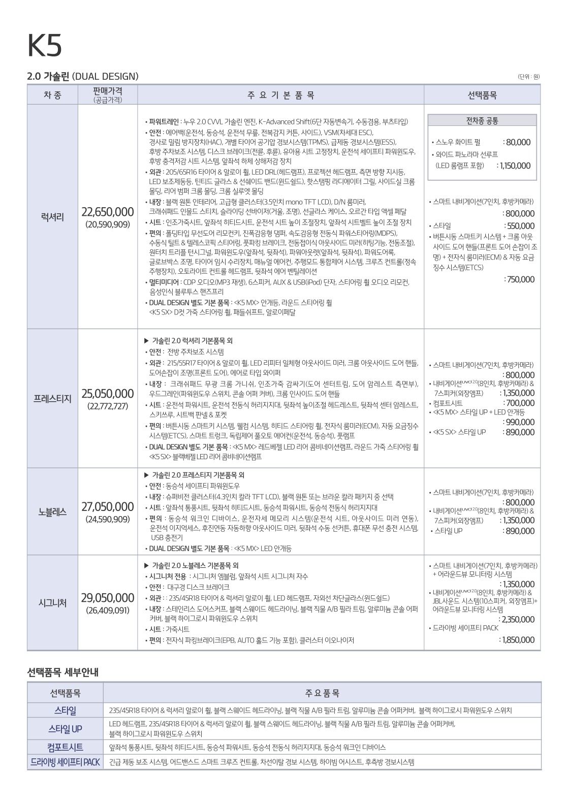 2015년 7월 K5 신차가격표 (2세대 K5 출시)