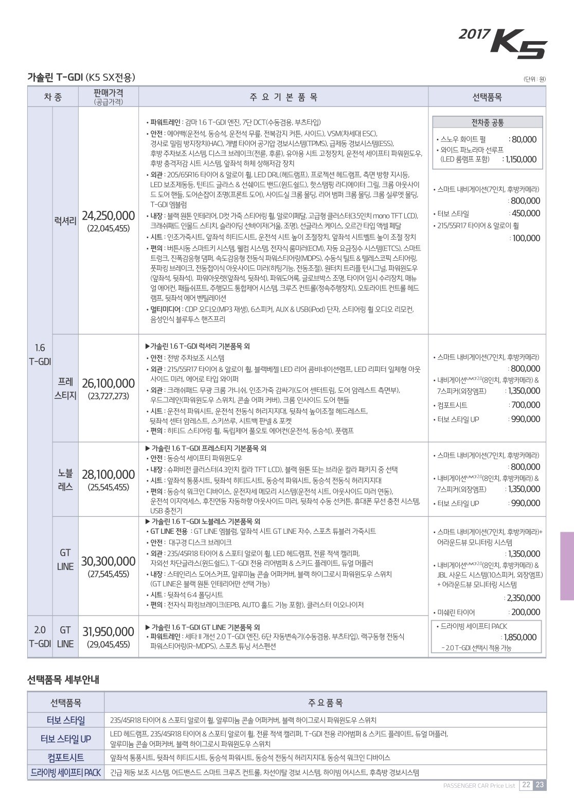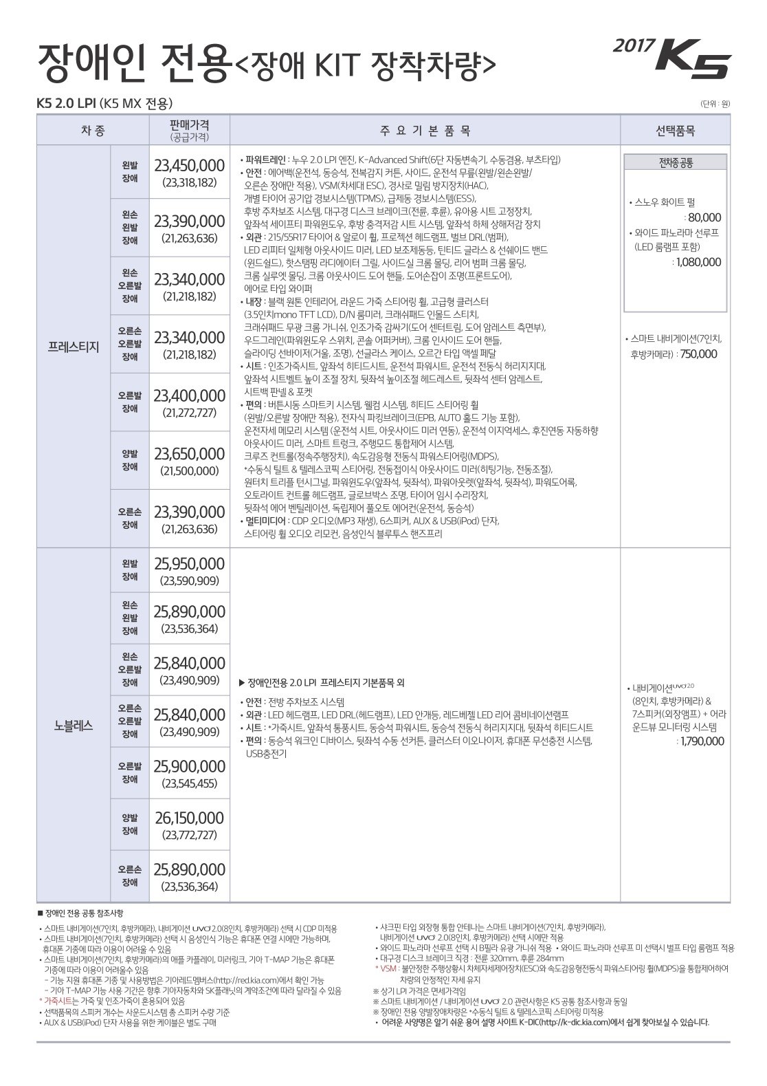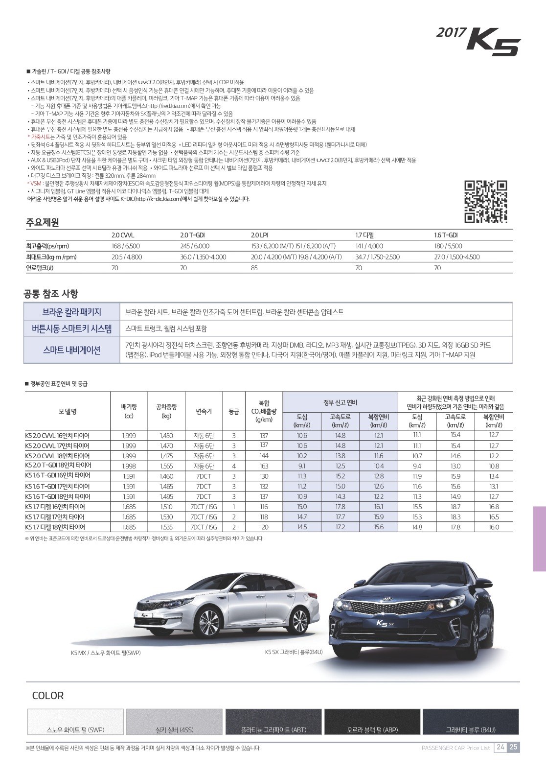 2015년 7월 K5 신차가격표 (2세대 K5 출시)