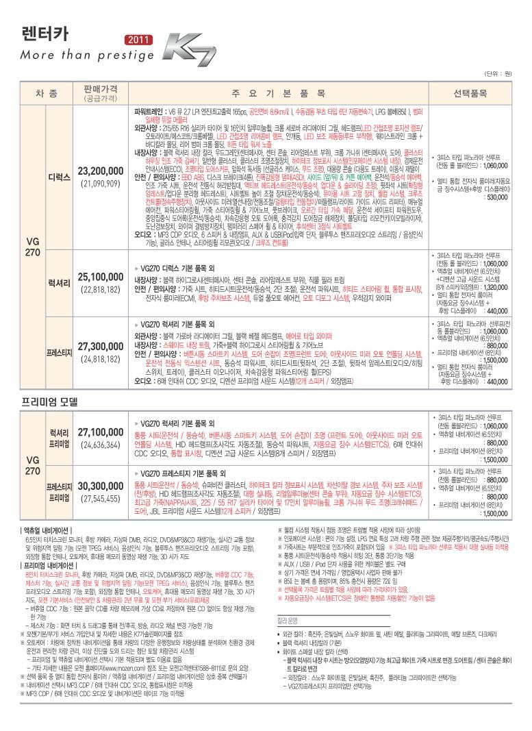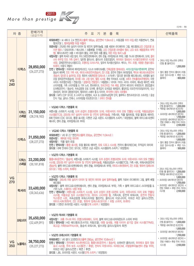 2011년 2월 K7 신차가격표 (더프레스티지 K7)