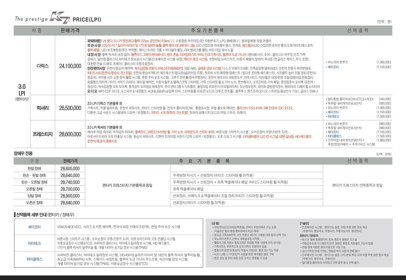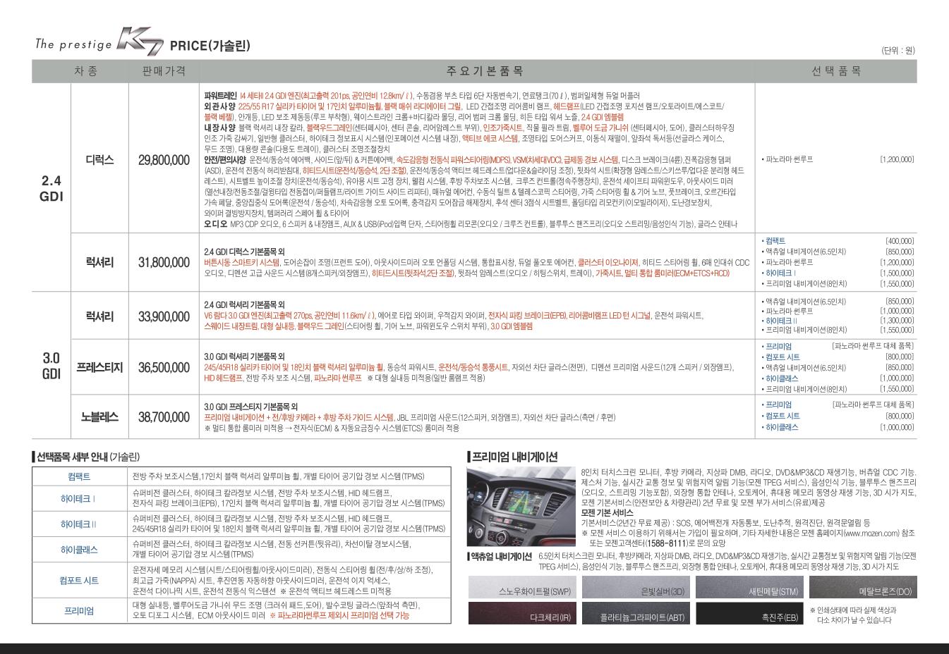 2011년 2월 K7 신차가격표 (더프레스티지 K7)