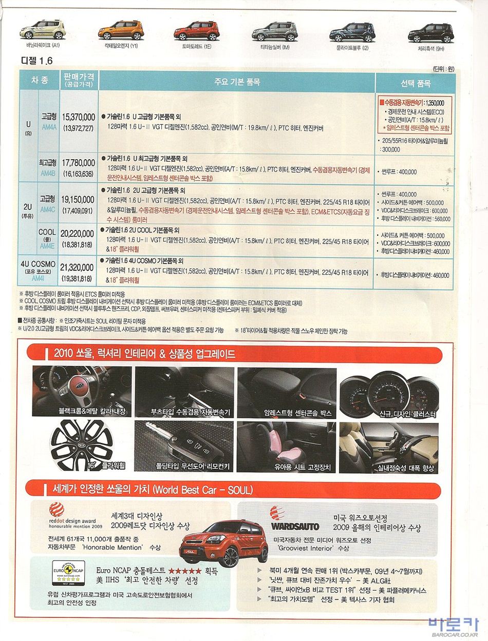 2009년 10월 쏘울 신차가격표
