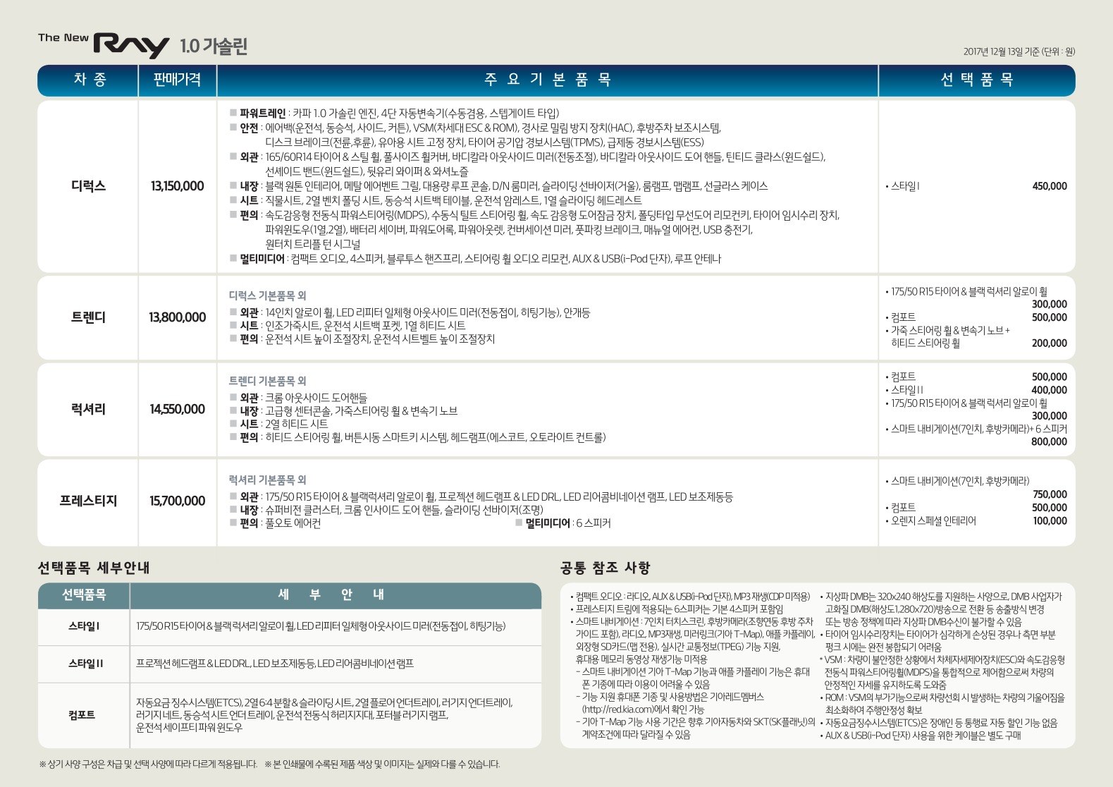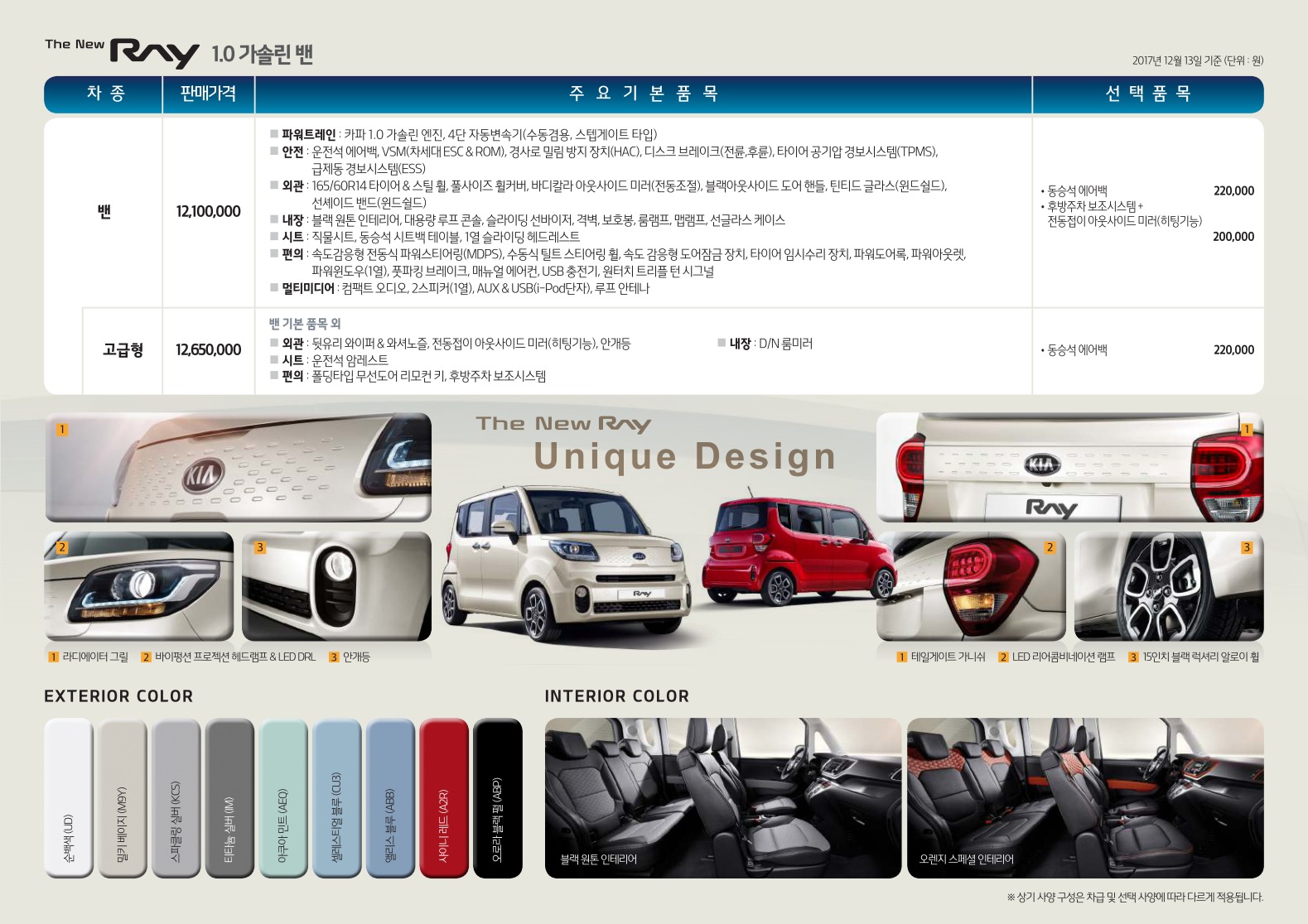 2017년 12월 더뉴 레이 신차가격표