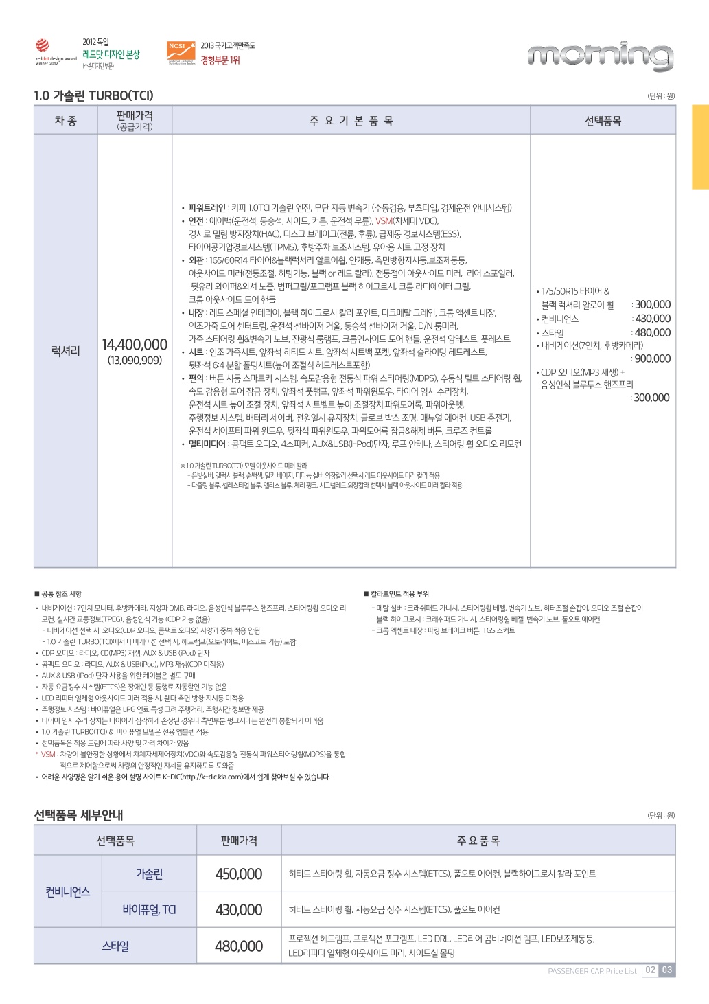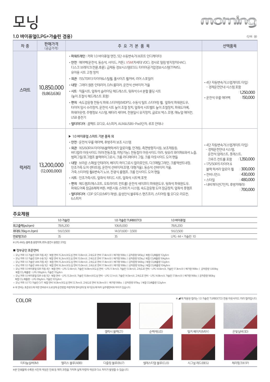 2015년 2월 모닝 신차가격표